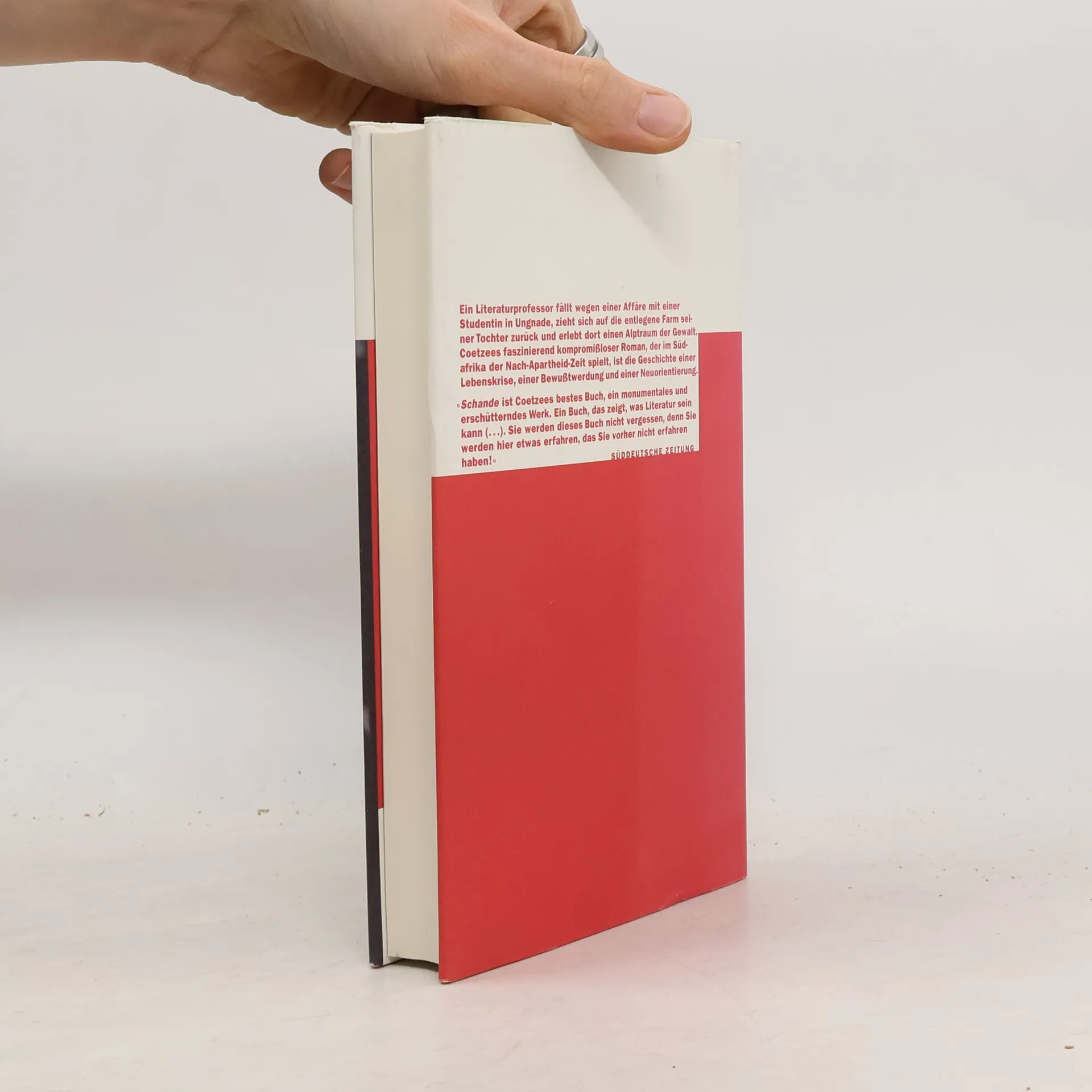 Davie Lurie, Literaturprofessor in mittleren Jahren und zweimal geschieden, ist in Ungnade gefallen: eine Affäre mit einer seiner Studentinnen ist an die Öffentlichkeit gedrungen. Der peinlichen Befragung entzieht er sich durch ein Schuldbekenntnis. Er quittiert seinen Dienst und verläßt Kapstadt, um für eine Weile zu seiner Tochter aufs Land zu ziehen. Lucy, die keinerlei Ambitionen in der Welt ihres Vaters hat, versucht auf einem entlegenen Stück Land eine kleine Farm aufzubauen. Zunächst scheint es, als könnten der Einfluss Lucys und der natürliche Rhythmus des Farmlebens Davids aus den Fugen geratenem Leben neuen Halt geben, doch dann werden Vater und Tochter Opfer eines brutalen Überfalls, in dessen Folge der grundlegende existentielle Konflikt zwischen beiden offen zutage tritt. »Die fortwirkende Erbschaft von Hass und Rachsucht, die das formelle Ende der Apartheid noch lange überdauern wird, beschwört J. M. Coetzee in lakonischer Sprache - und mit der Bannkraft von Weltliteratur.« Der Spiegel Ausgezeichnet mit dem Booker-Preis 1999