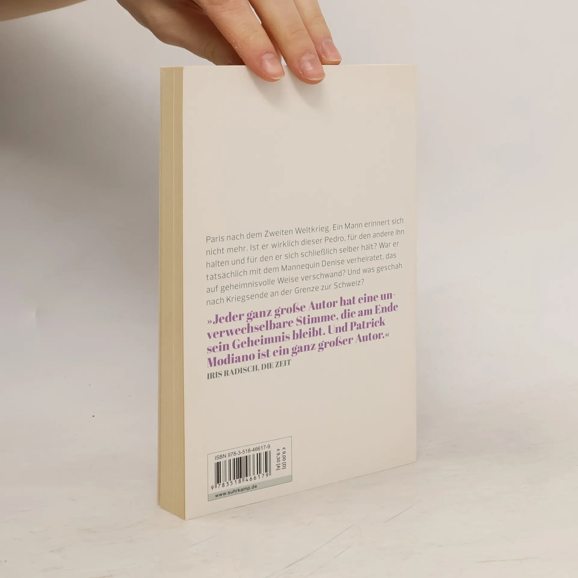 Paris nach dem Zweiten Weltkrieg. Ein Mann erinnert sich nicht mehr. Die einzigen Anhaltspunkte für seine Suche: ein altes Foto, eine Todesanzeige. Er trifft auf eine kleine Gruppe von Emigranten, die in dunkle Geschäfte verwickelt sind. Darunter ein Barpianist, ein Gärtner, ein Fotograf. Eine russische Tänzerin taucht auf – und verschwindet wieder. Ein englischer Jockey kreuzt seinen Weg – und ein griechischer Nachtbummler, der von einer Zufallsbekanntschaft ermordet wird. Wer ist dieser Suchende? War er tatsächlich mit dem Mannequin Denise verheiratet, das auf geheimnisvolle Weise verschwand? Und was geschah nach Kriegsende an der Grenze zur Schweiz?