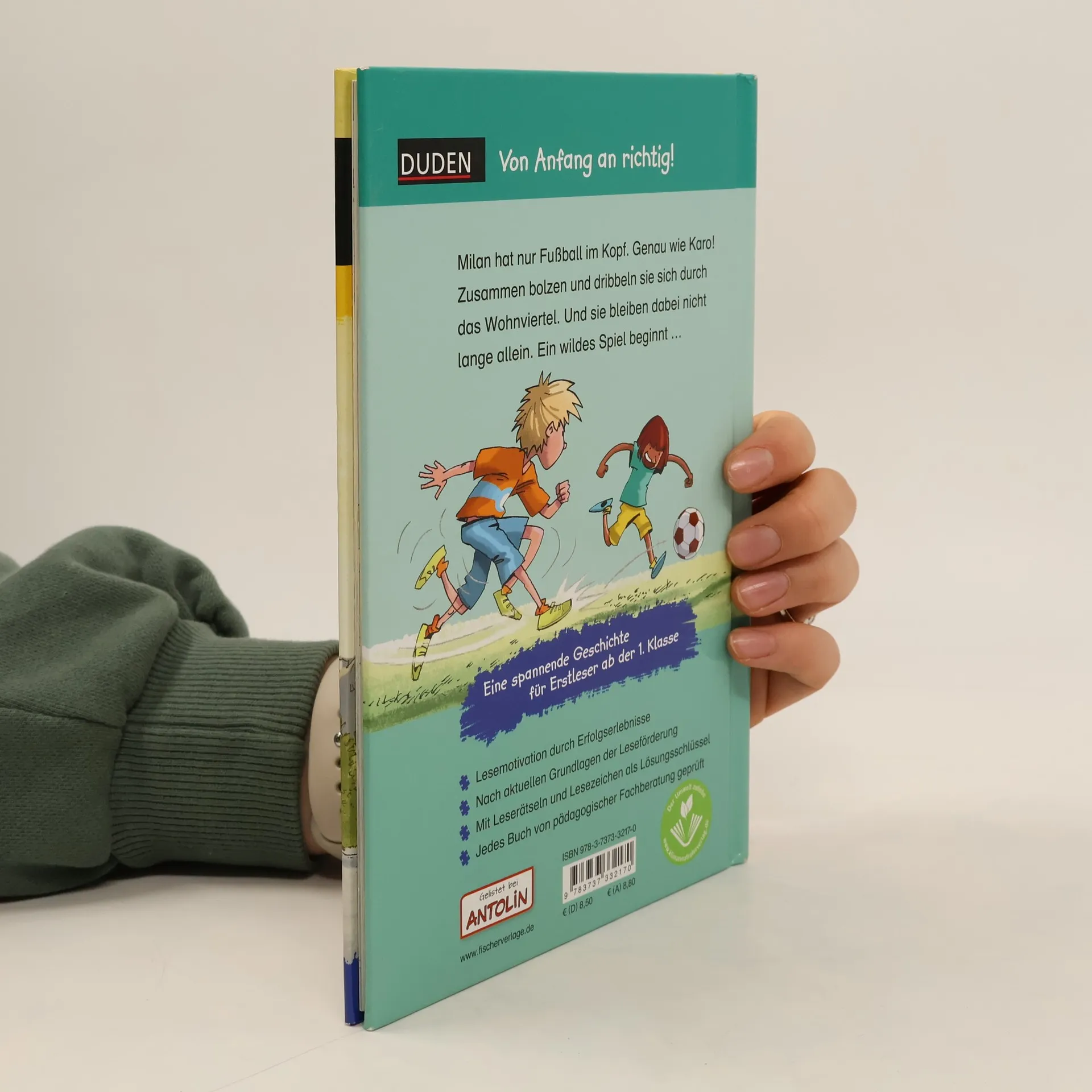 +++ Erstlesespaß ab der 1. Klasse +++ Karo und Milan lieben Fußball. Nichts ist vor ihnen sicher: Die Straße wird zum Fußballplatz, der Postbote zum Mittelfeldspieler. Und die Mülltonne begeht ein fieses Foul und hat eindeutig die rote Karte verdient.Wer gewinnt wohl das spannende Spiel? Dieses Buch aus der Erstlesereihe „Leseprofi“ von FISCHER Duden Kinderbuch sorgt mit einer spannenden Geschichte und tollen Illustrationen für Lesespaß. Erfolgserlebnisse bei der Lektüre erhöhen die Lesemotivation, denn der Text ist genau auf die Bedürfnisse der Kinder zugeschnitten. Kleine Leserätsel begleiten beim Lesen. Ein tolles Lesezeichen dient als Lösungsschlüssel, und auf jeden Leser wartet eine Überraschung zum Download. Alle Titel der Reihe werden bei Antolin gelistet. +++ Duden – von Anfang an richtig! +++