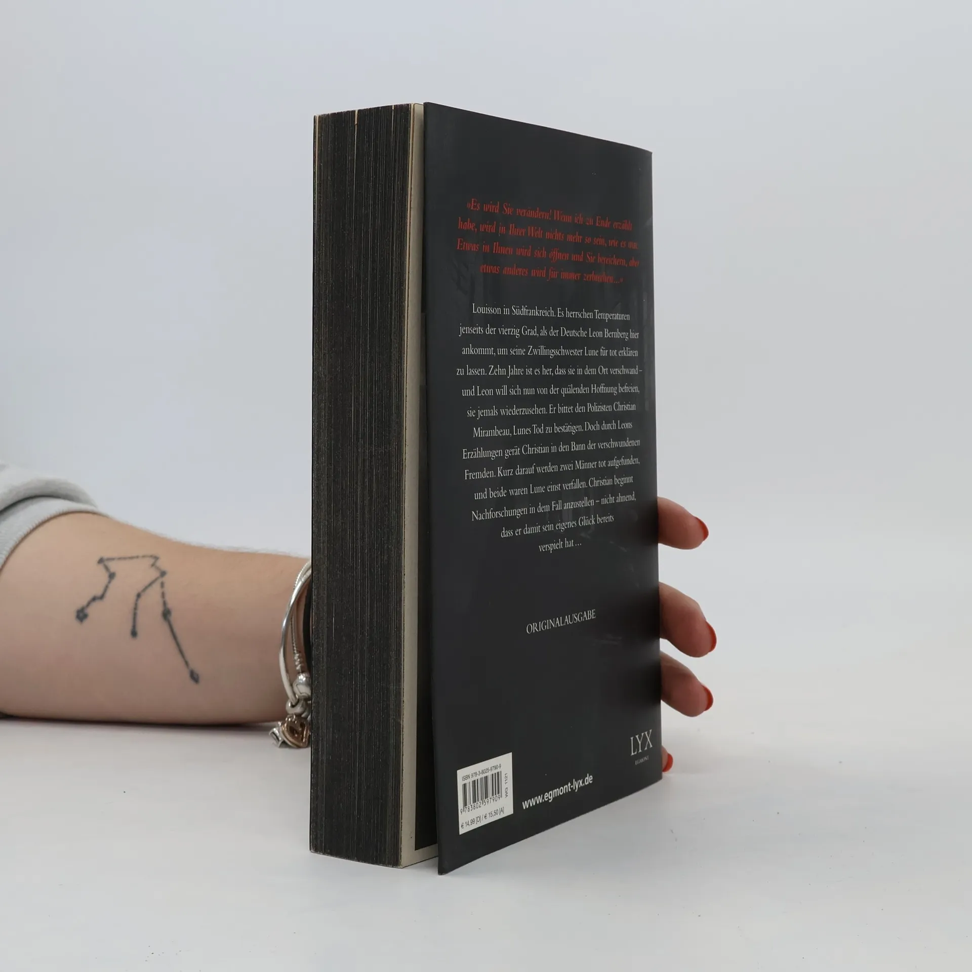 „Es wird Sie verändern! Wenn ich zu Ende erzählt habe, wird in Ihrer Welt nichts mehr so sein, wie es war. Etwas in Ihnen wird sich öffnen und Sie bereichern, aber etwas anderes wird für immer zerbrechen -“ Die französische Stadt Louisson leidet unter der Hexenhitze, als der Deutsche Leon Bernberg dort auftaucht, um nach seiner Zwillingsschwester Lune zu suchen. Diese hat vor zehn Jahren hier gelebt - und verschwand damals spurlos. Leon will sie nun offiziell für tot erklären lassen und bittet den Polizisten Christian Mirambeau um Hilfe. Doch durch Leons Erzählungen gerät auch Christian in den Bann der verschwundenen Fremden. Er beginnt Nachforschungen in dem Fall anzustellen - nicht ahnend, dass er damit sein eigenes Glück bereits verspielt hat ...