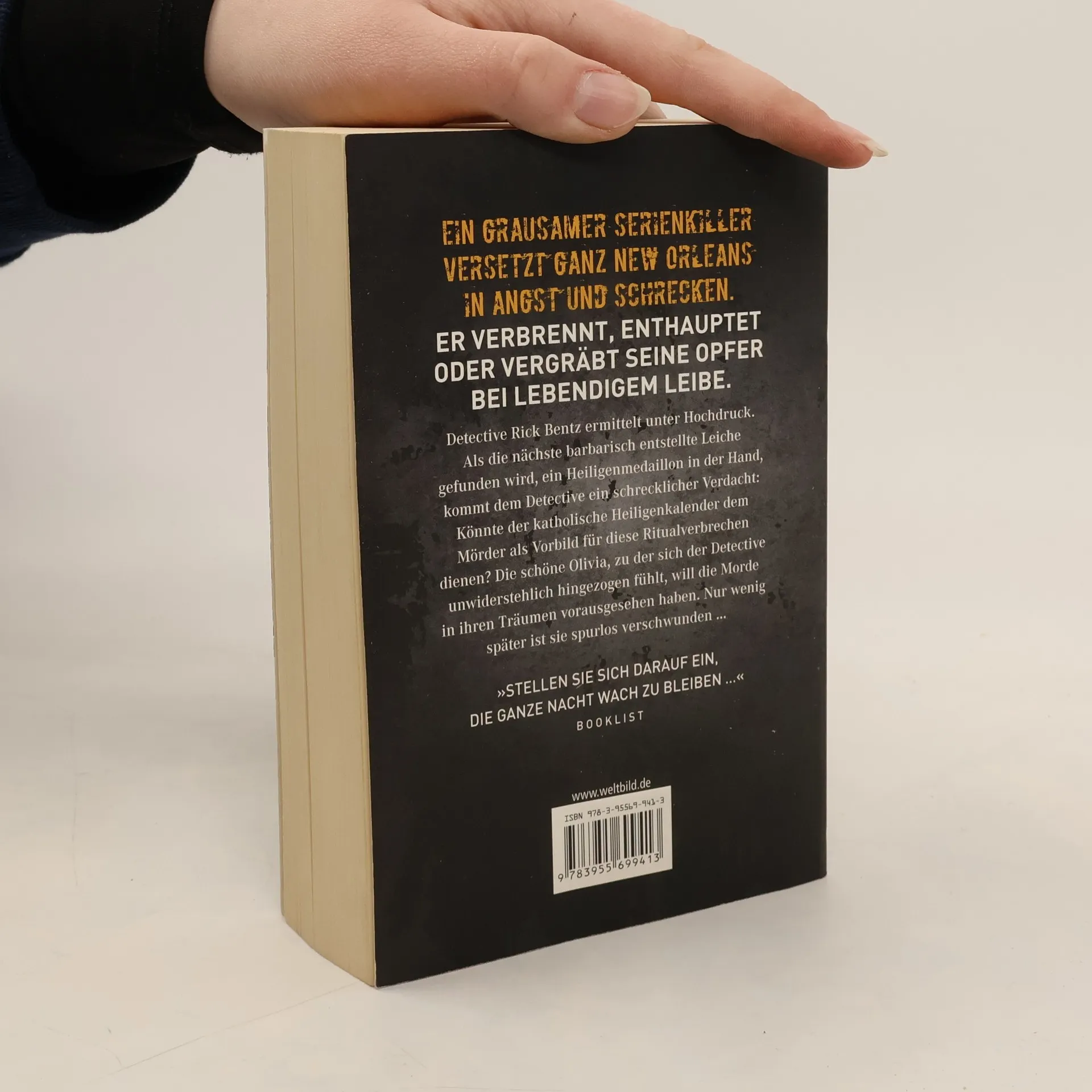 Ein grausamer Serienkiller versetzt ganz New Orleans in Angst und Schrecken. Er verbrennt, enthauptet oder vergräbt seine Opfer bei lebendigem Leibe. Detective Rick Bentz ermittelt unter Hochdruck. Als die nächste barbarisch entstellte Leiche gefunden wird, ein Heiligenmedaillon in der Hand, kommt dem Detective ein schrecklicher Verdacht: Könnte der katholische Heiligenkalender dem Täter als Vorbild für diese Ritualmorde dienen? Die schöne Olivia, zu der sich der Detective unwiderstehlich hingezogen fühlt, will die Morde in ihren Träumen vorhergesehen haben. Nur wenig später ist sie spurlos verschwunden …