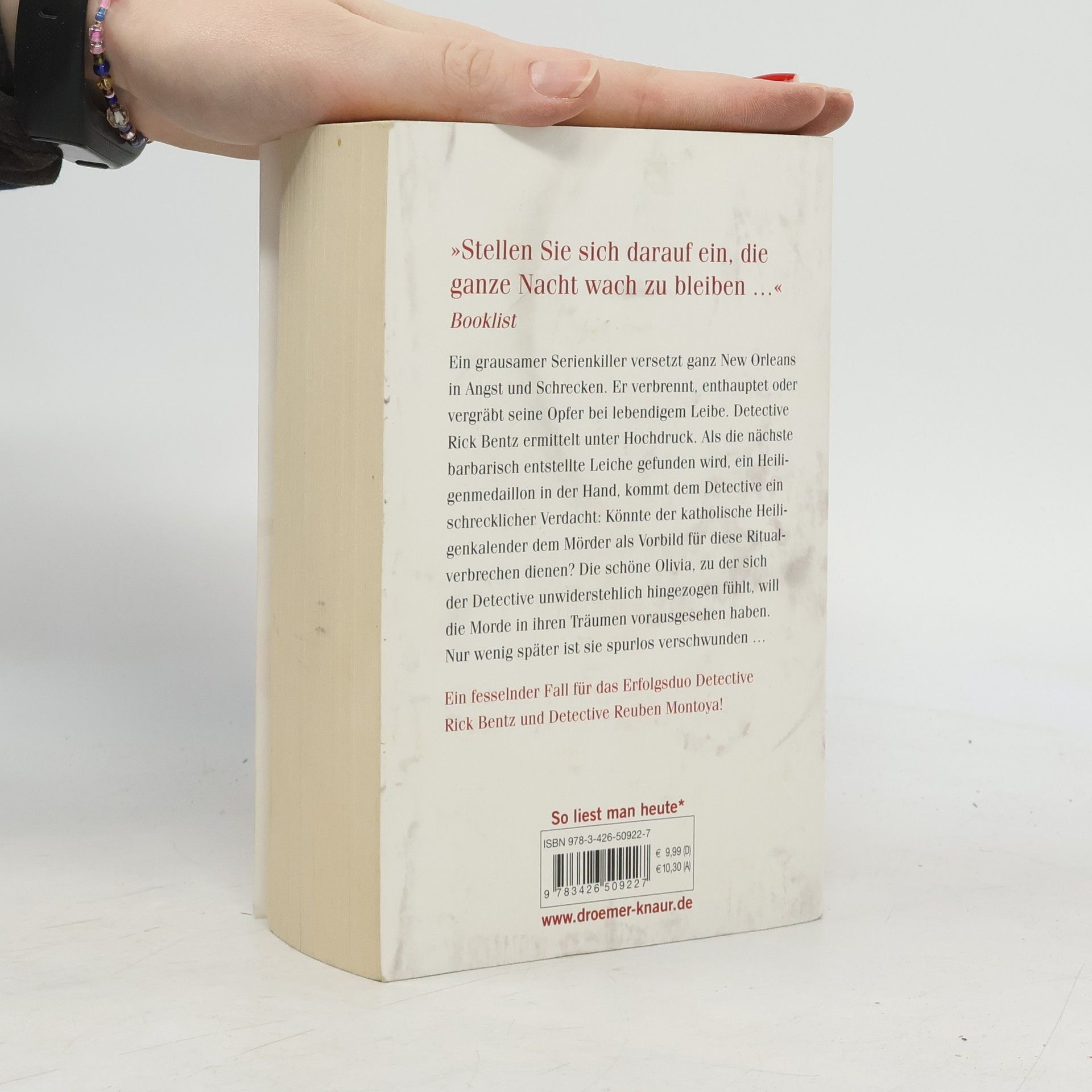 Ein grausamer Serienkiller versetzt ganz New Orleans in Angst und Schrecken. Er verbrennt, enthauptet oder vergräbt seine Opfer bei lebendigem Leibe. Detective Rick Bentz ermittelt unter Hochdruck. Als die nächste barbarisch entstellte Leiche gefunden wird, ein Heiligenmedaillon in der Hand, kommt dem Detective ein schrecklicher Verdacht: Könnte der katholische Heiligenkalender dem Täter als Vorbild für diese Ritualmorde dienen? Die schöne Olivia, zu der sich der Detective unwiderstehlich hingezogen fühlt, will die Morde in ihren Träumen vorhergesehen haben. Nur wenig später ist sie spurlos verschwunden …