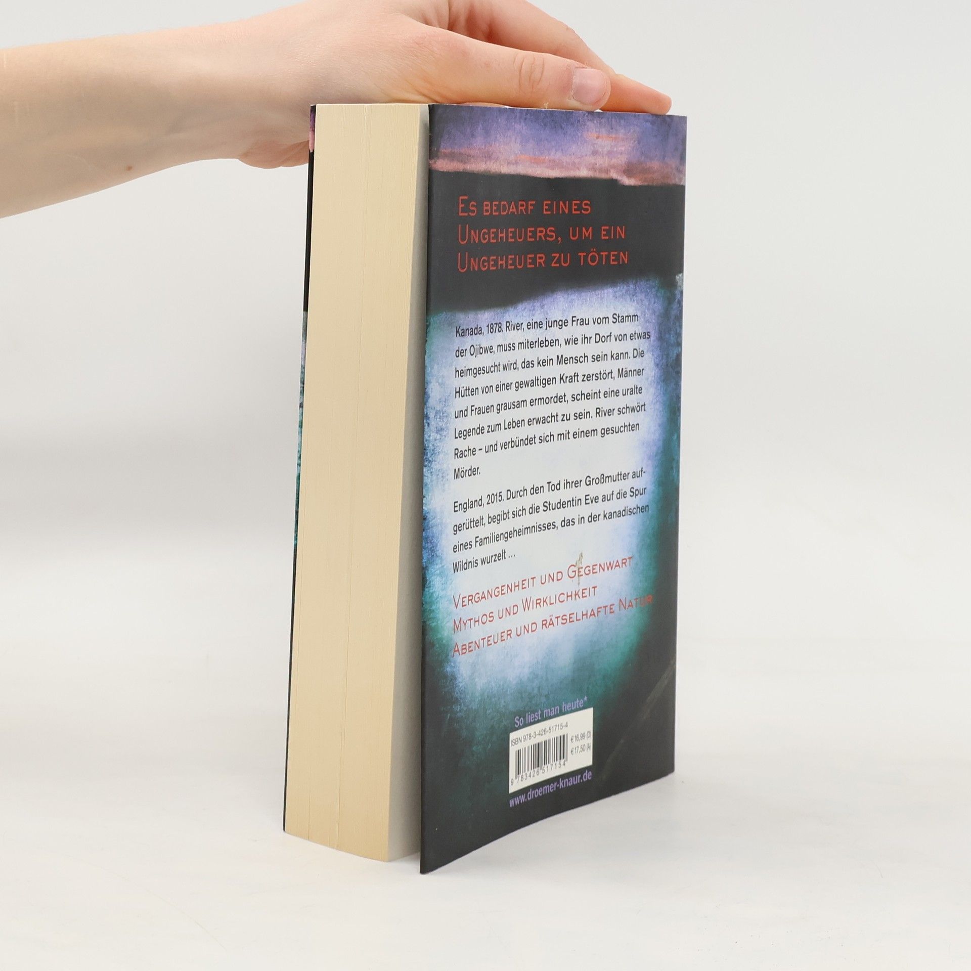 Es bedarf eines Ungeheuers, um ein Ungeheuer zu töten... Kanada 1878. River, eine junge Frau vom Stamm der Ojibwe, muss miterleben, wie ihr Dorf von etwas heimgesucht wird, das kein Mensch sein kann. Die Hütten von einer gewaltigen Kraft zerstört, Männer und Frauen grausam ermordet, scheint eine uralte Legende zum Leben erwacht zu sein. River schwört Rache – und verbündet sich mit einem gesuchten Mörder. England 2015. Durch den Tod ihrer Großmutter aufgerüttelt, begibt sich die Studentin Eve auf die Spur eines Familiengeheimnisses, das in der kanadischen Wildnis wurzelt ...
