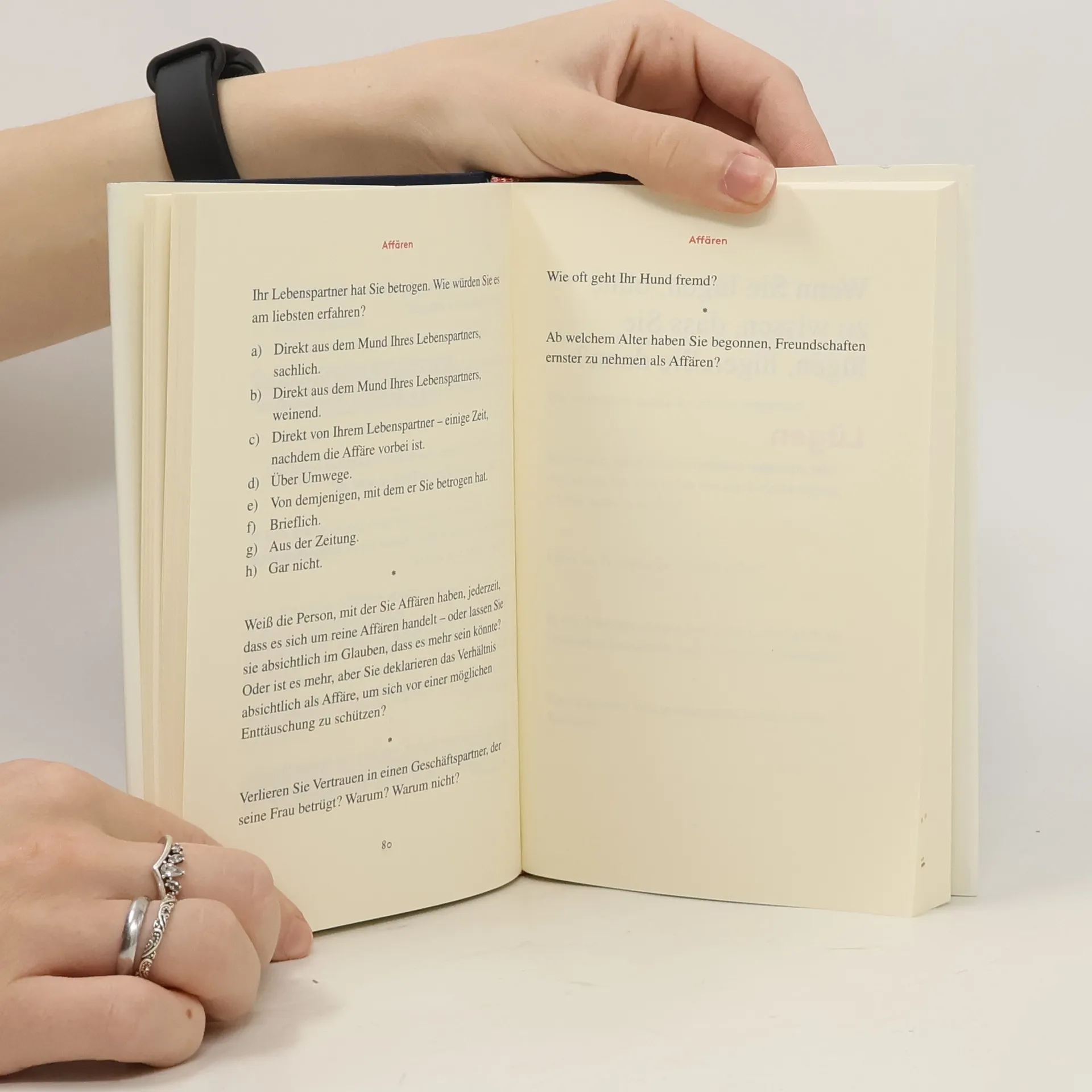 Fragen, denen sich jeder mindestens einmal im Leben stellen muss. Zur diskreten Selbsterforschung oder als amüsantes Gesellschaftsspiel. Fragen, die belustigen, die unter die Haut gehen, unerwartete, hinterhältige Fragen, die sich ihrerseits in Frage stellen wie in einem Kaleidoskop – und garantiert anregen: zum Lauf der Welt, zu Liebe, Sex, Erfolg, Karriere, Alter, Tod, Gott und Glück.