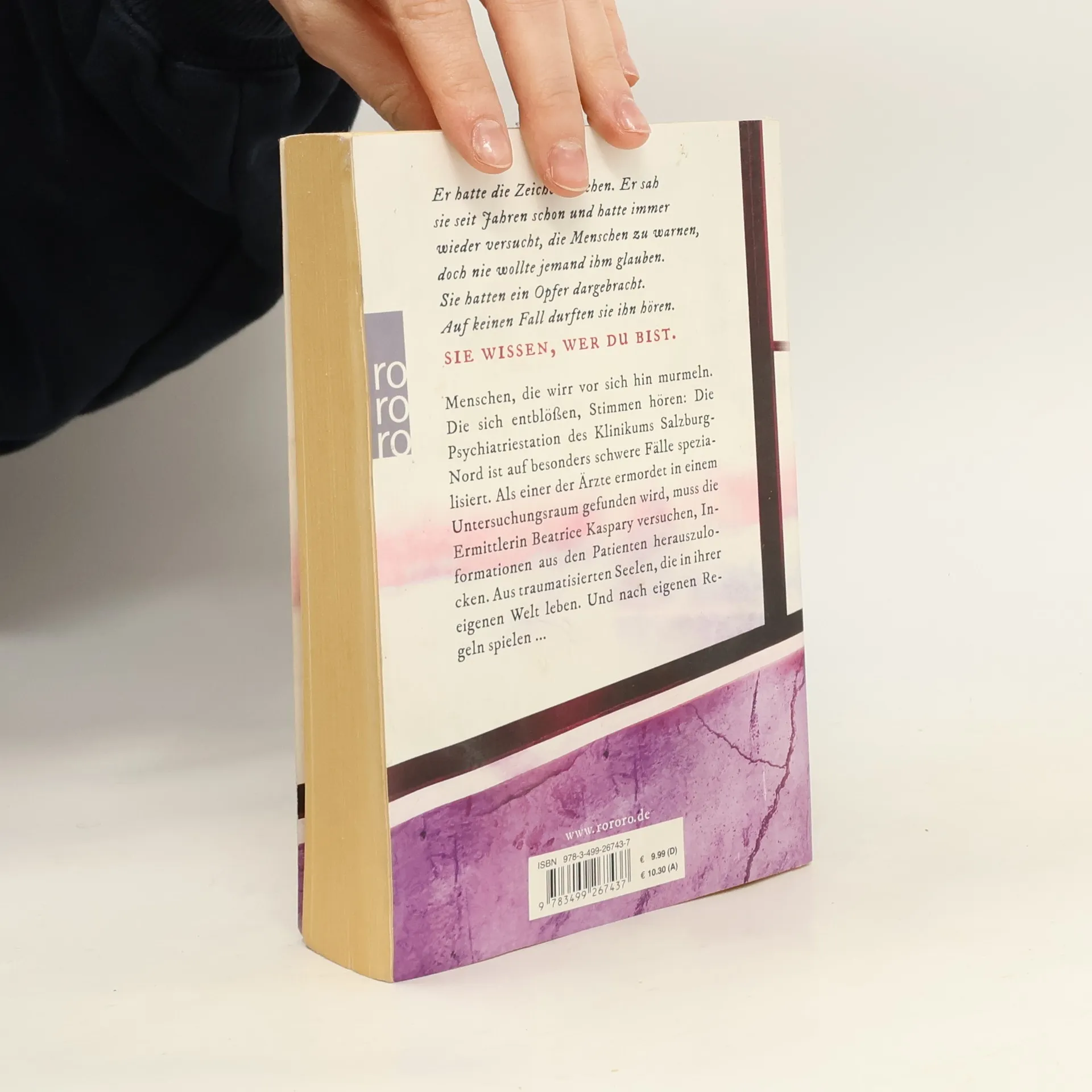 Er hatte die Zeichen gesehen. Er sah sie seit Jahren schon und hatte immer wieder versucht, die Menschen zu warnen, doch nie wollte jemand ihm glauben. Sie hatten ein Opfer dargebracht. Auf keinen Fall durften sie ihn hören. SIE WISSEN, WER DU BIST. Menschen, die wirr vor sich hin murmeln. Die sich entblößen, Stimmen hören: Die Psychiatriestation des Klinikums Salzburg-Nord ist auf besonders schwere Fälle spezialisiert. Als einer der Ärzte ermordet in einem Untersuchungsraum gefunden wird, muss die Ermittlerin Beatrice Kaspary versuchen, Informationen aus den Patienten herauszulocken. Aus traumatisierten Seelen, die in ihrer eigenen Welt leben. Und nach eigenen Regeln spielen ... Der dritte Fall des Ermittlerduos Kaspary & Wenninger