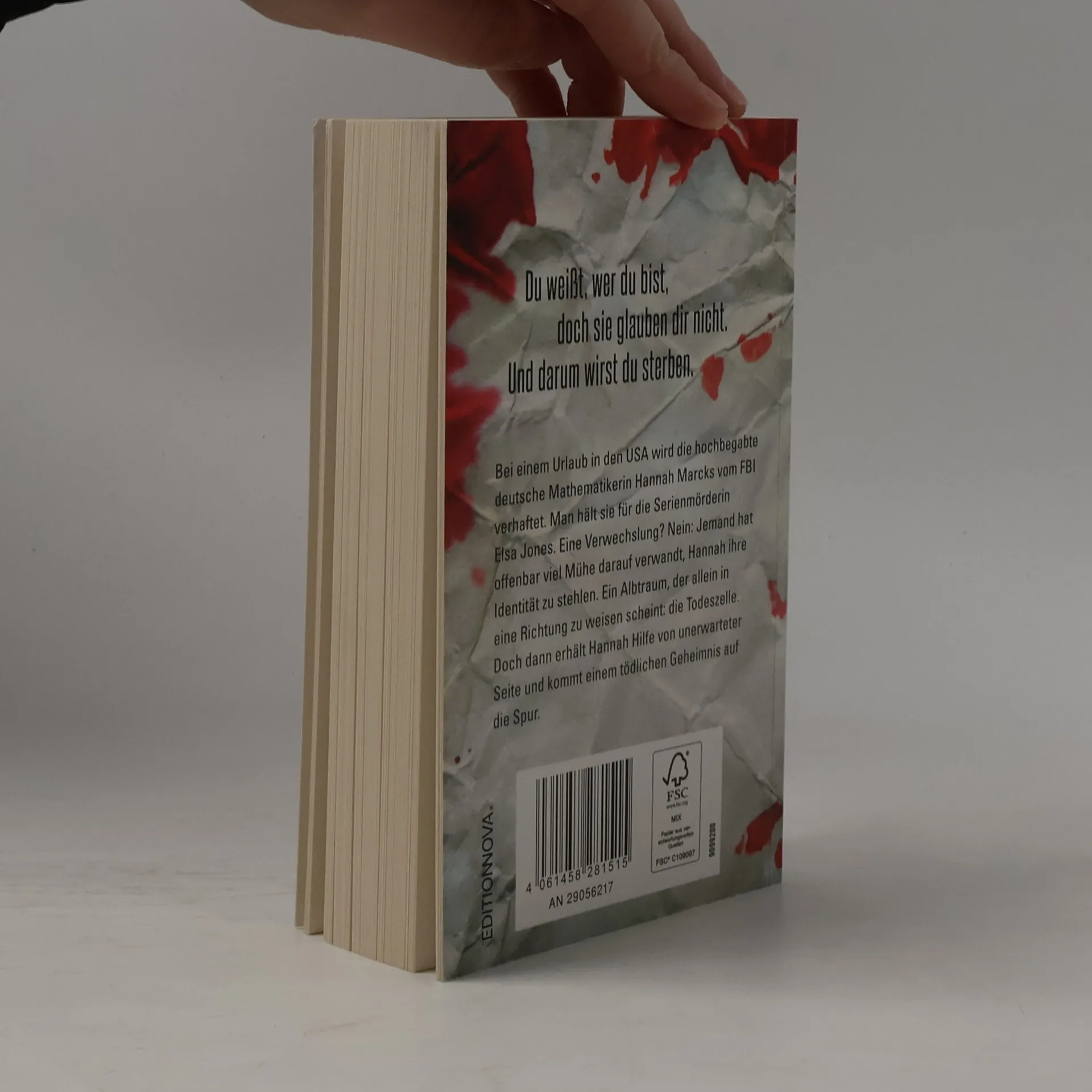 Du weißt, wer du bist, doch sie glauben dir nicht. Und darum wirst du sterben. Bei einem Urlaub in den USA wird die hochbegabte deutsche Mathematikerin Hannah Marcks vom FBI verhaftet. Man hält sie für die Serienmörderin Elsa Jones. Eine Verwechslung? Nein: Jemand hat offenbar viel Mühe darauf verwandt, Hannah ihre Identität zu stehlen. Ein Albtraum, der allein in eine Richtung zu weisen scheint: die Todeszelle. Doch dann erhält Hannah Hilfe von unerwarteter Seite und kommt einem tödlichen Geheimnis auf die Spur. Dieser Thriller legt die Nerven mit mathematischer Präzision bloß.