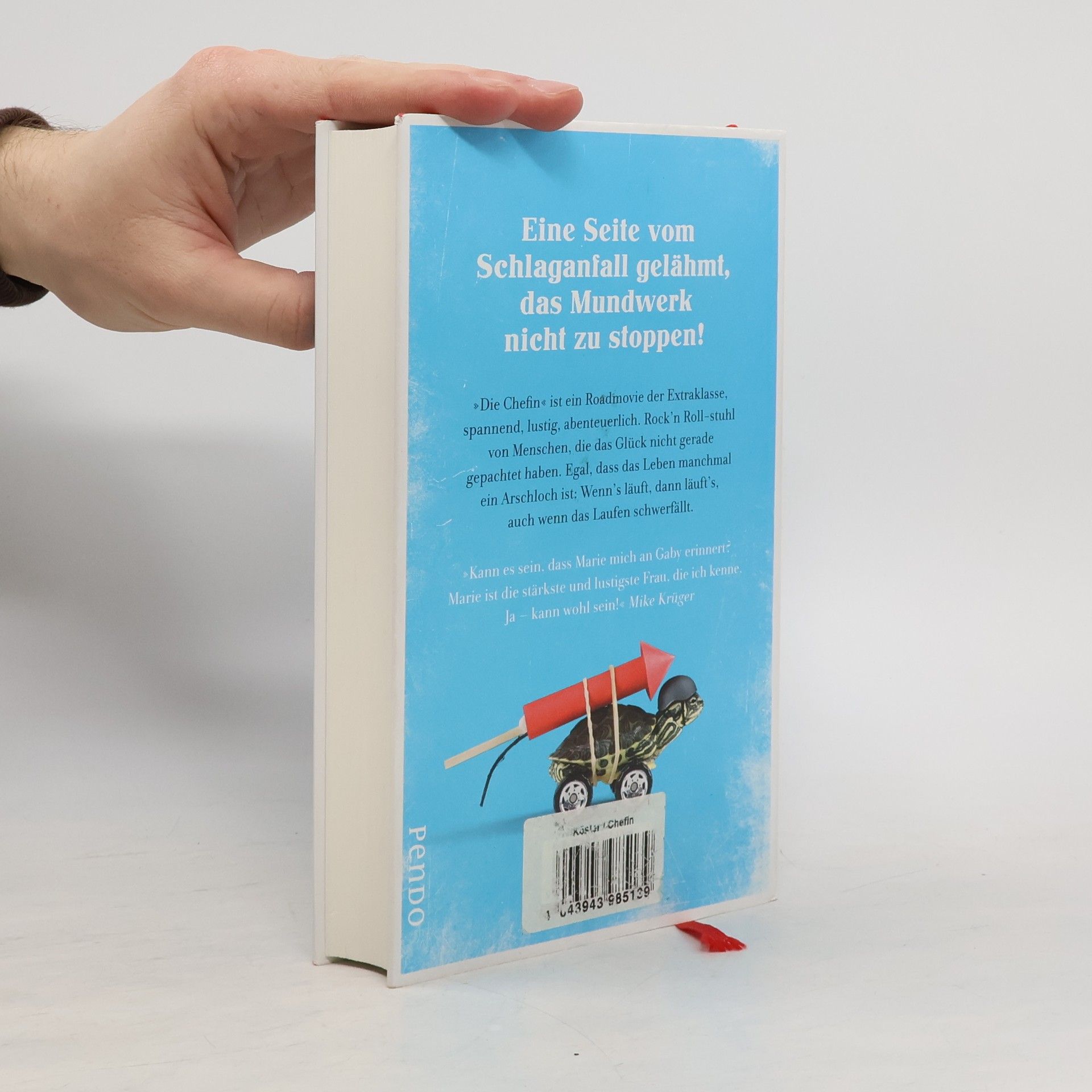 Marie Sanders Leben ist in Schieflage geraten. Bei der erfolgreichen Rocksängerin, von allen nur »Die Chefin« genannt, läuft's nicht mehr. Es sitzt sich nur noch. Und zwar im Rollstuhl. Schlaganfall, kurz nach ihrem zweiundvierzigsten Geburtstag. Also ideale Voraussetzungen, um die Verfolgung einer verbrecherischen Bande aufzunehmen. Um sich auf eine Odyssee durch halb Europa zu begeben. Um sich in einen selbstverliebten Bodybuilder zu verlieben. Um zwei Kindern ihre Eltern wiederzugeben. Um das Leben neu anzugehen.