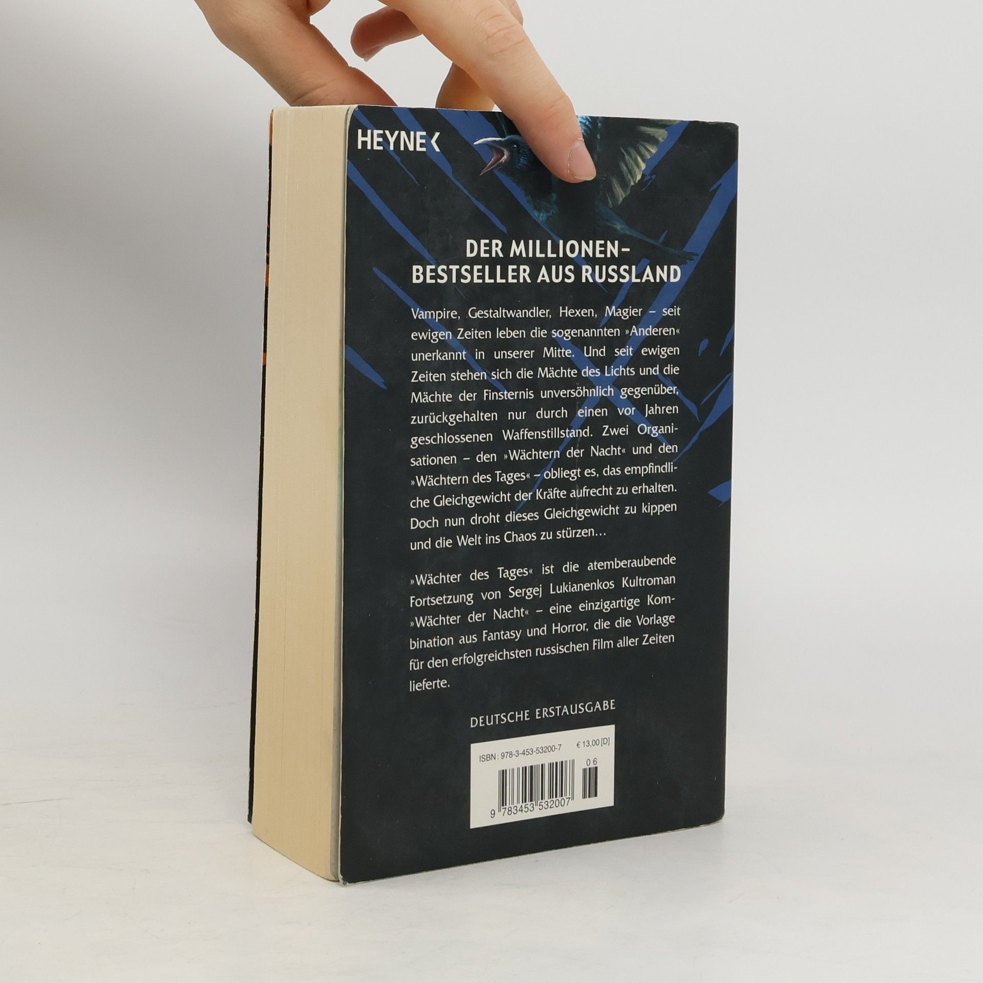 Die grandiose Fortsetzung von „Wächter der Nacht“ Vampire, Gestaltwandler, Hexen, Magier – seit ewigen Zeiten leben die so genannten „Anderen“ unerkannt in unserer Mitte. Und zwei Organisationen obliegt es, den Frieden zwischen den Mächten des Lichts und den Mächten der Dunkelheit aufrechtzuerhalten: den „Wächtern der Nacht“ und den „Wächtern des Tages“. Doch dieser Friede ist so brüchig wie nie zuvor … In Russland die Kult-Fantasy-Serie schlechthin und beliebter als „Der Herr der Ringe“ oder „Harry Potter“ – jetzt auch in Deutschland ein riesiger Erfolg! Nach der Verfilmung von „Wächter der Nacht“, dem erfolgreichsten russischen Film aller Zeiten, kommt 2006 auch die Fortsetzung „Wächter des Tages“ in die deutschen Kinos.