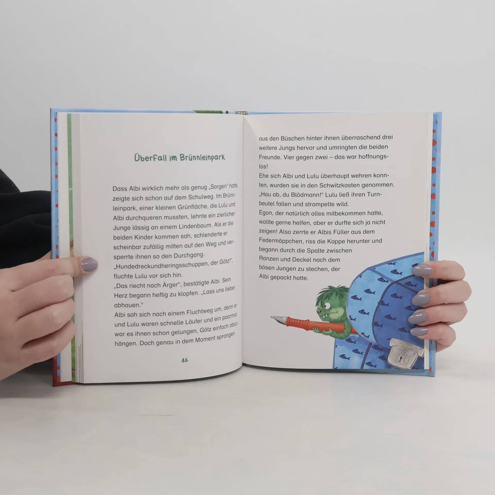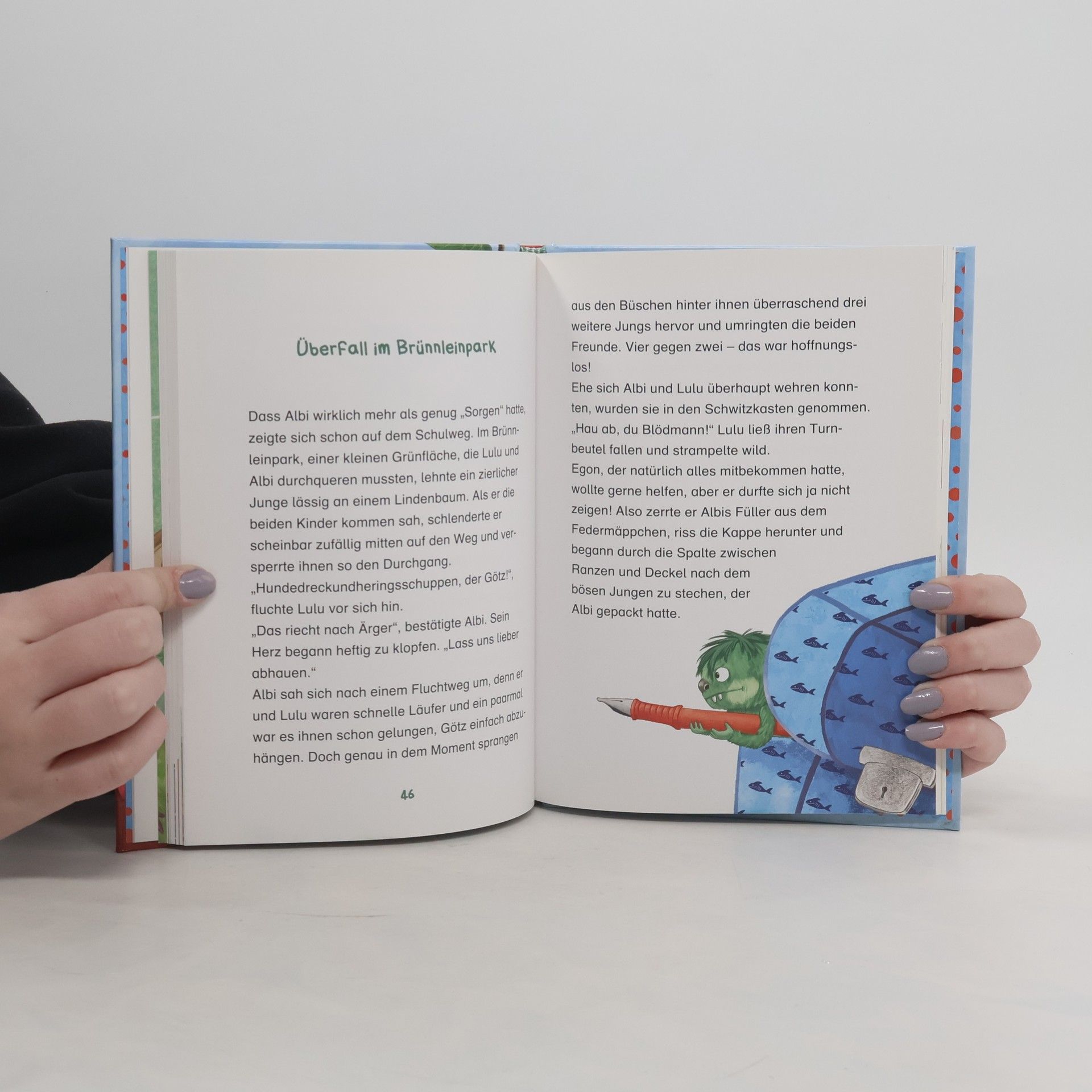 Egon Krumpfling – kleiner Held mit großem Herz Egon ist schrecklich aufgeregt: Am nächsten Tag findet in der Krumpflingschule eine Prüfung statt! Um eine gute Note zu bekommen, muss sich jeder Schüler einen krumpflingfiesen Trick ausdenken. Und der wird dann vom Lehrer und der strengen Oma Krumpfling bewertet. Leider hat der freundliche Egon so gar keine Idee! Als er seinen Freund, den Menschenjungen Albi, um Hilfe bittet, schüttelt der eigentlich wohlerzogene Junge die bösen Einfälle nur so aus dem Ärmel. Das passt gar nicht zu Albi, findet Egon. Könnte es sein, dass jemand Albi üble Streiche spielt? Egon beschließt, seine Prüfung zu schwänzen und Albi in die Schule zu begleiten. Vielleicht braucht sein Freund ja Hilfe … Die beliebten Krumpflinge toben durch die Kinderzimmer und brauen sich aus Schimpfwörtern leckeren Krumpftee. Ob beim Vorlesen oder Selberlesen - Spaß ist immer garantiert! Ausstattung: Mit fbg. Illustrationen