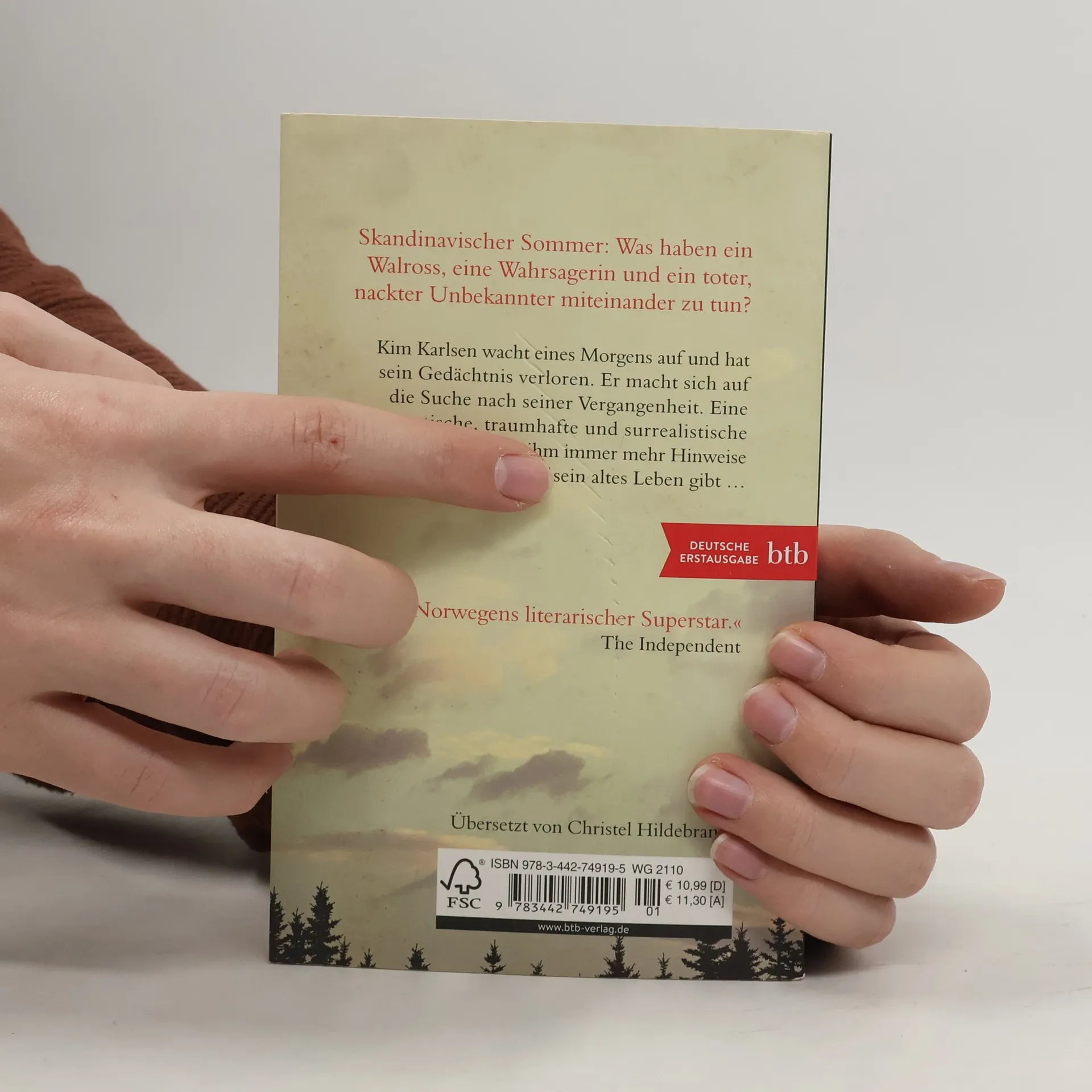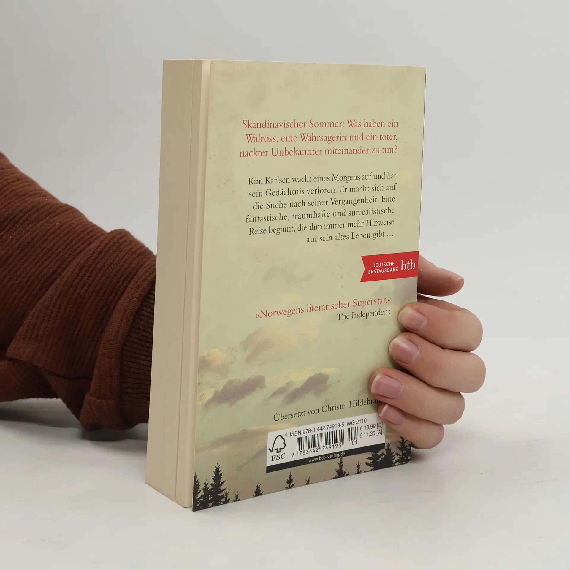 Was haben ein Walross, eine Wahrsagerin und ein toter, nackter Unbekannter miteinander zu tun? Kim Karlsen wacht eines Morgens in einem Hotelzimmer in Sortland auf. Er ist alleine, er ist nackt – und er kann sich auch nicht daran erinnern, wer er überhaupt ist. Sein Gebiss findet er, auch seinen Anzug und außerdem einen Taschenkalender aus dem Jahr 2001. Herausfinden muss er noch, was es mit seiner Vergangenheit auf sich hat. Er macht sich auf den Weg, begegnet einem Friseur, der in den sechziger Jahren zu leben scheint, einer Wahrsagerin, einem Walross und einer Band namens Dirty Fingers. Eine fantastische, traumhafte und surrealistische Reise, die ihm immer mehr Hinweise auf sein altes Leben gibt.…