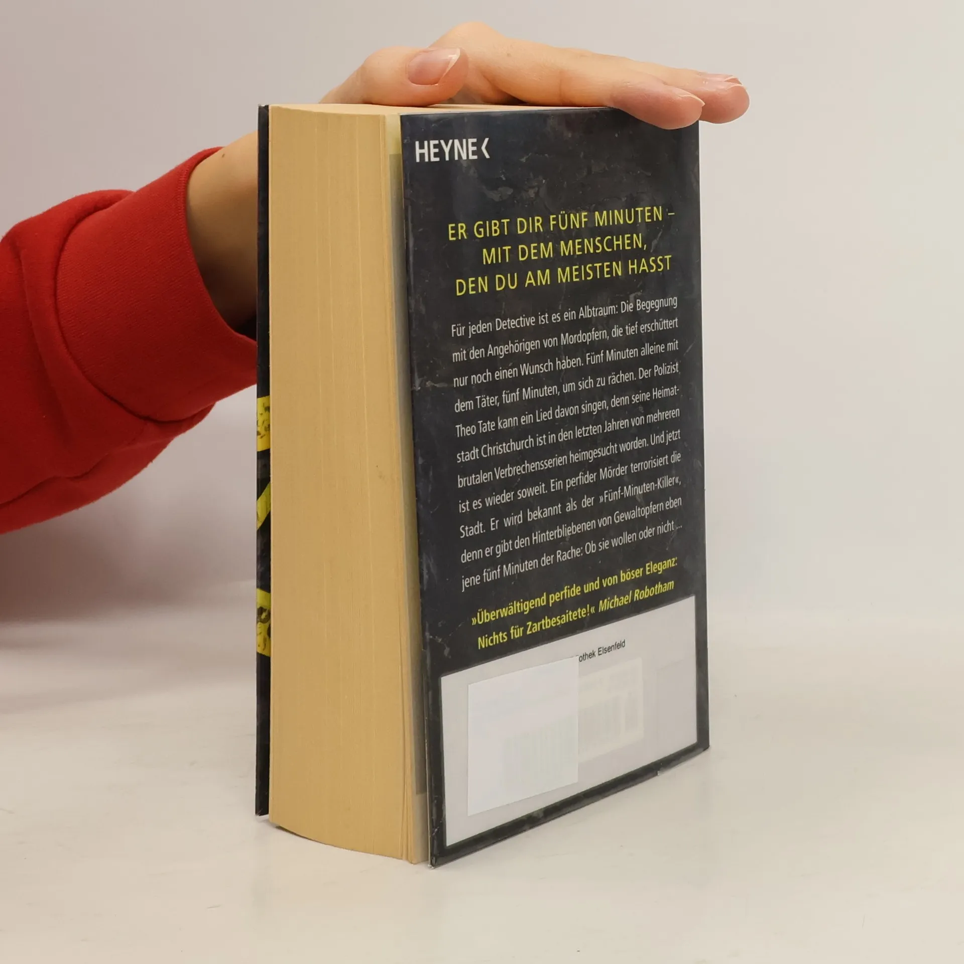 Er gibt dir fünf Minuten - mit dem Menschen, den du am meisten hasst Für jeden Detective ist es ein Albtraum: Die Begegnung mit den Angehörigen von Mordopfern, die tief erschüttert nur noch einen Wunsch haben. Fünf Minuten alleine mit dem Täter, fünf Minuten, um sich zu rächen. Der Polizist Theo Tate kann ein Lied davon singen, denn seine Heimatstadt Christchurch ist in den letzten Jahren von mehreren brutalen Verbrechensserien heimgesucht worden. Und jetzt ist es wieder soweit. Ein perfider Mörder terrorisiert die Stadt. Er wird bekannt als der Fünf-Minuten-Killer, denn er gibt den Hinterbliebenen von Gewaltopfern eben jene fünf Minuten der Rache: Ob sie wollen oder nicht ....