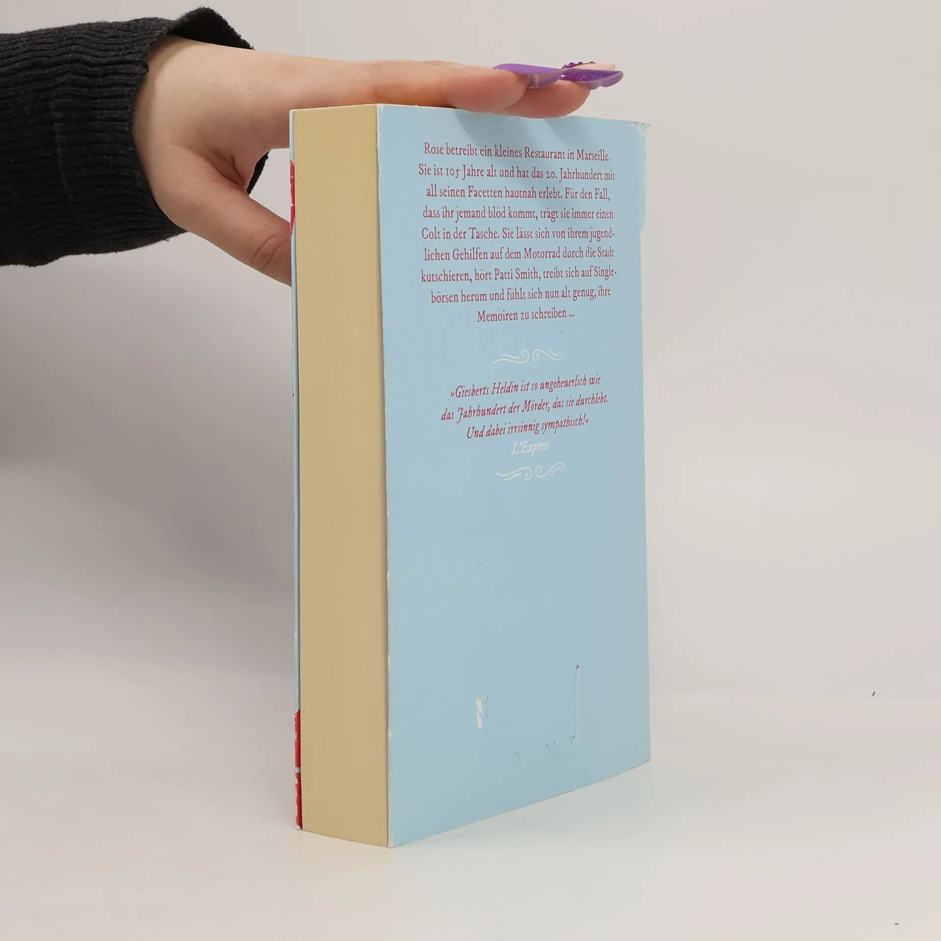 Politisch unkorrekt, humorvoll und geistreichRose ist 105 Jahre alt, eine begnadete Köchin mit einem kleinen Restaurant in Marseille. Sie hat den Genozid an den Armeniern, die Schrecken der Nazizeit und die Auswüchse des Maoismus erlebt. Deshalb hat sie vor nichts und niemandem mehr Angst. Für den Fall, dass ihr jemand blöd kommt, trägt sie immer einen Colt in der Tasche. Sie lässt sich von Mamadou, ihrem jugendlichen Gehilfen im Restaurant, auf dem Motorrad durch Marseille kutschieren, hört Patti Smith, treibt sich im Internet auf Singlebörsen herum und denkt auch im biblischen Alter immer nur an das Eine. Und sie meint, dass sie nun alt genug ist, ihre Memoiren zu schreiben: Um das Leben zu feiern und die Weltgeschichte das Fürchten zu lehren.