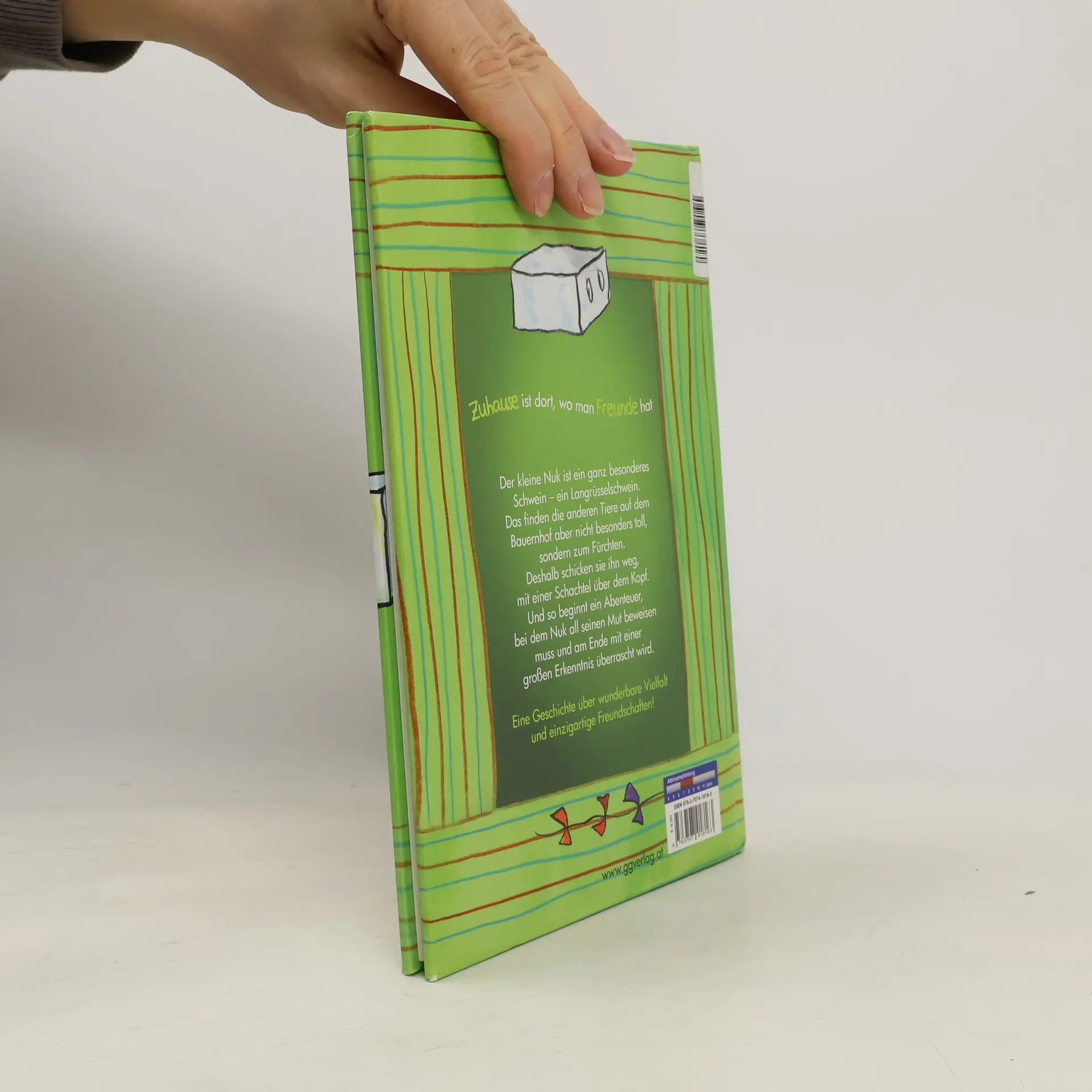 Der kleine Nuk ist ein ganz besonderes Schwein – ein Rüsselschwein. Das finden die anderen Tiere auf dem Bauernhof aber nicht besonders toll, sondern zum Fürchten. Deshalb schicken sie ihn weg, mit einer Schachtel auf dem Kopf. Und so beginnt ein Abenteuer, bei dem Nuk all einen Mut beweisen muss und am Ende mit einer großen Erkenntnis überrascht wird. Eine Geschichte über wunderbare Vielfalt und einzigartige Freundschaften.