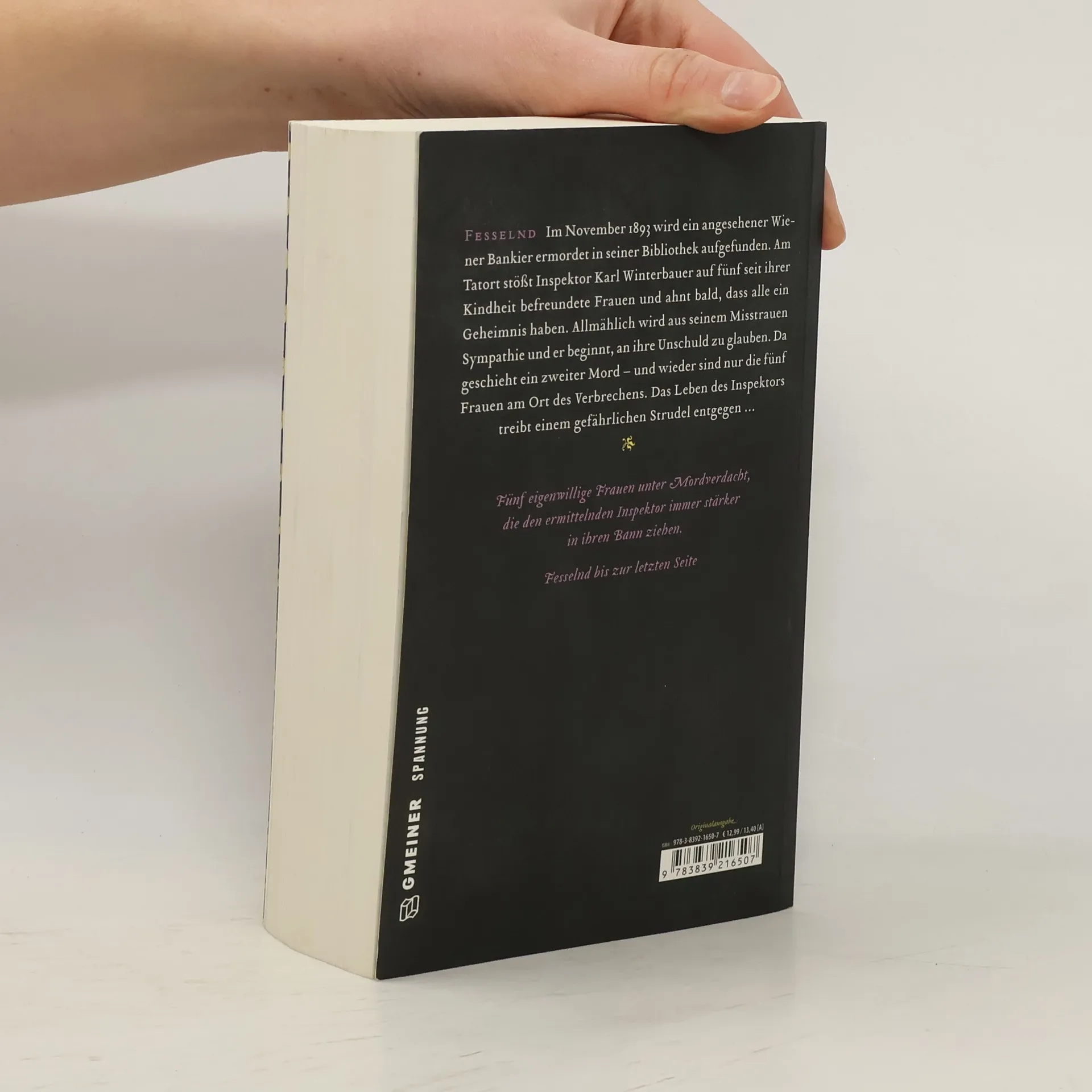 Im November 1893 wird ein angesehener Wiener Bankier ermordet in seiner Bibliothek aufgefunden. Am Tatort stößt Inspektor Karl Winterbauer auf fünf seit ihrer Kindheit befreundete Frauen und ahnt bald, dass alle ein Geheimnis haben. Allmählich wird aus seinem Misstrauen Sympathie und er beginnt, an ihre Unschuld zu glauben. Da geschieht ein zweiter Mord - und wieder sind nur die fünf Frauen am Ort des Verbrechens. Das Leben des Inspektors treibt einem gefährlichen Strudel entgegen ...