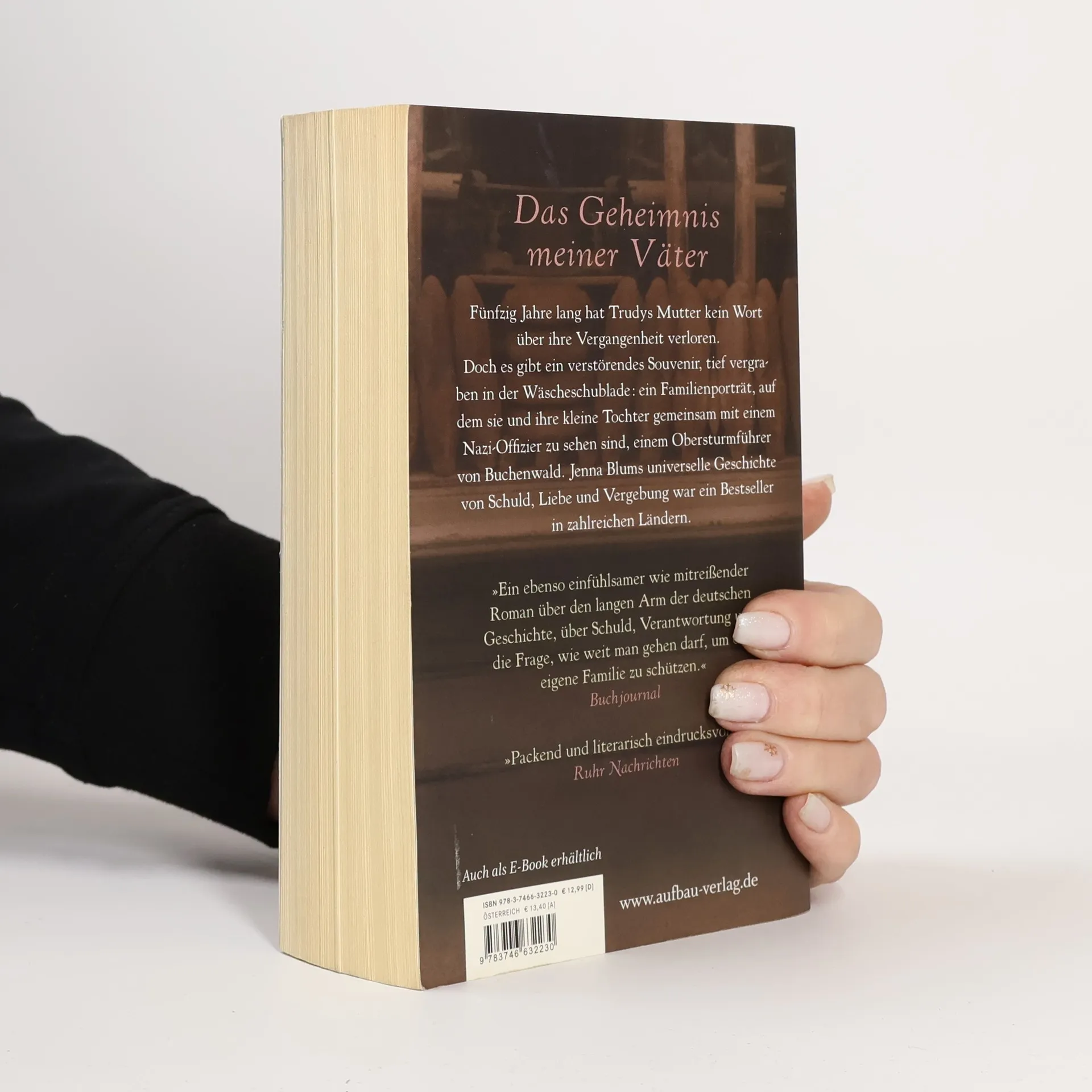 Das Geheimnis meiner Väter. Fünfzig Jahre lang hat Trudys Mutter kein Wort über ihre Vergangenheit verloren. Doch es gibt ein verstörendes Souvenir, tief vergraben in der Wäscheschublade: ein Familienporträt, auf dem sie und ihre kleine Tochter gemeinsam mit einem Nazi-Offizier zu sehen sind, einem Obersturmführer von Buchenwald. Jenna Blums universelle Geschichte von Schuld, Liebe und Vergebung war ein Bestseller in zahlreichen Ländern. »Ein ebenso einfühlsamer wie mitreißender Roman über den langen Arm der deutschen Geschichte, über Schuld, Verantwortung und die Frage, wie weit man gehen darf, um die eigene Familie zu schützen. « Buchjournal »Packend und literarisch eindrucksvoll.« Ruhr Nachrichten.