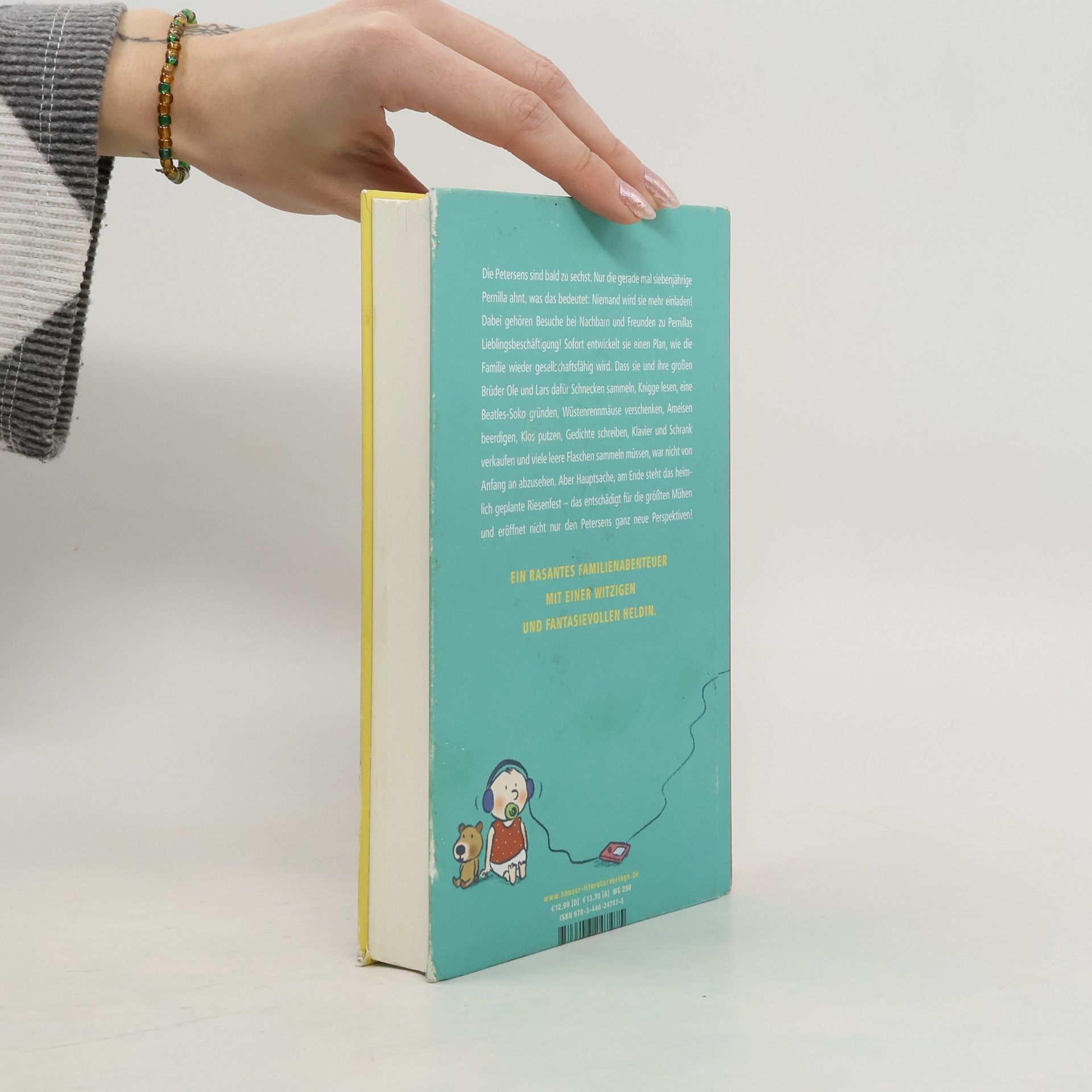 Die Nachricht, dass Mama schwanger ist, treibt Pernilla die Schweißperlen auf die Stirn. Sie hat doch schon zwei Geschwister! Ihren Eltern müsste eigentlich klar sein, dass eine sechsköpfige Familie gesellschaftlich abgeschrieben ist. Nicht mal die Nachbarn laden sie noch zum Grillabend ein. Da hilft nur eines: selbst die größte Party geben. Natürlich würde es Mama und Papa überfordern, Getränke, ein Buffet und eine Band für 146 Gäste aufzutreiben. Zum Glück hat Pernilla da schon eine Idee, wie sie Oles Sprachtalent, das Klavier und den Küchenschrank zu Geld machen kann … Dieses Kinderbuch erzählt mit viel Fantasie und Humor von den Nöten und Chancen einer Großfamilie. Zum Mitlachen und Mitfiebern.