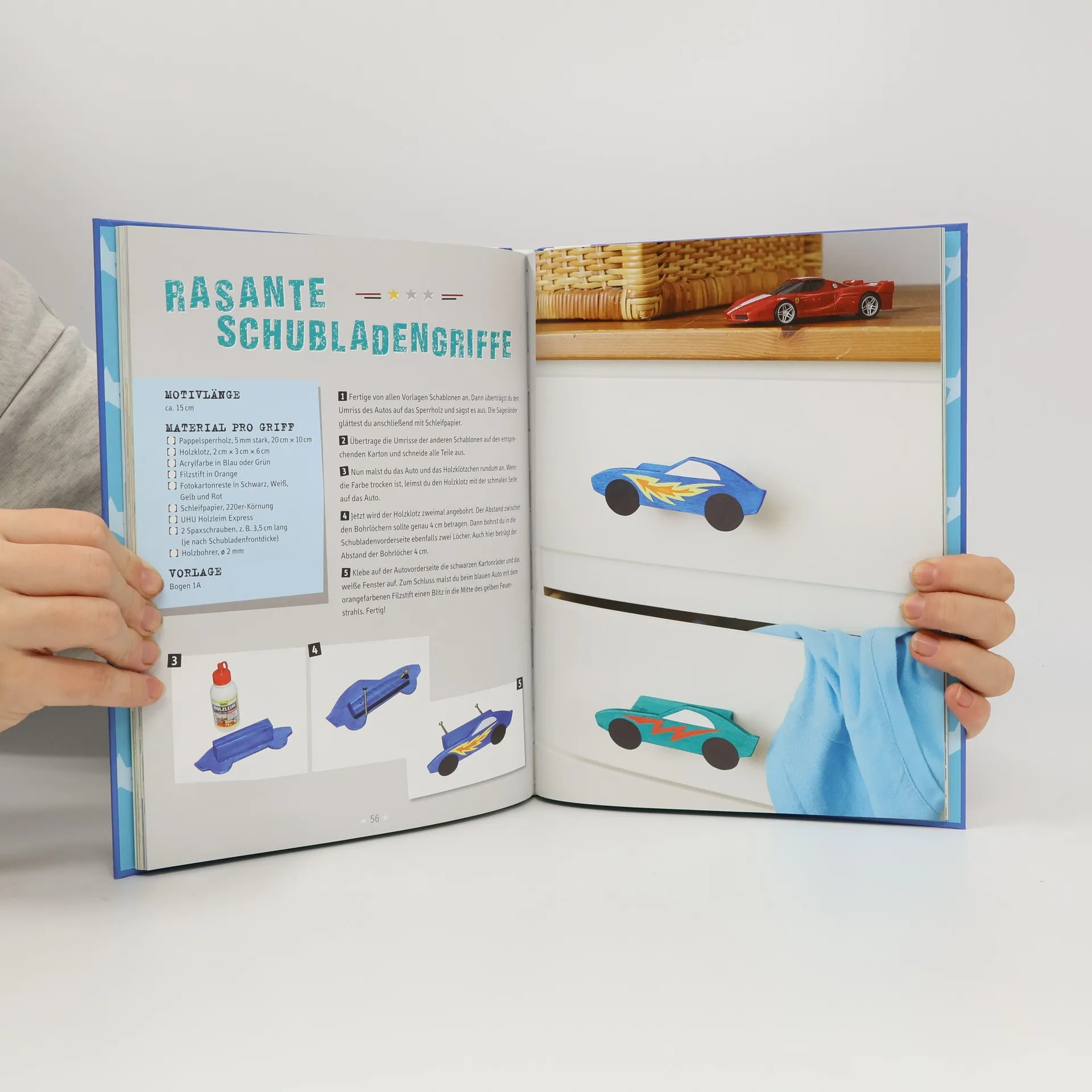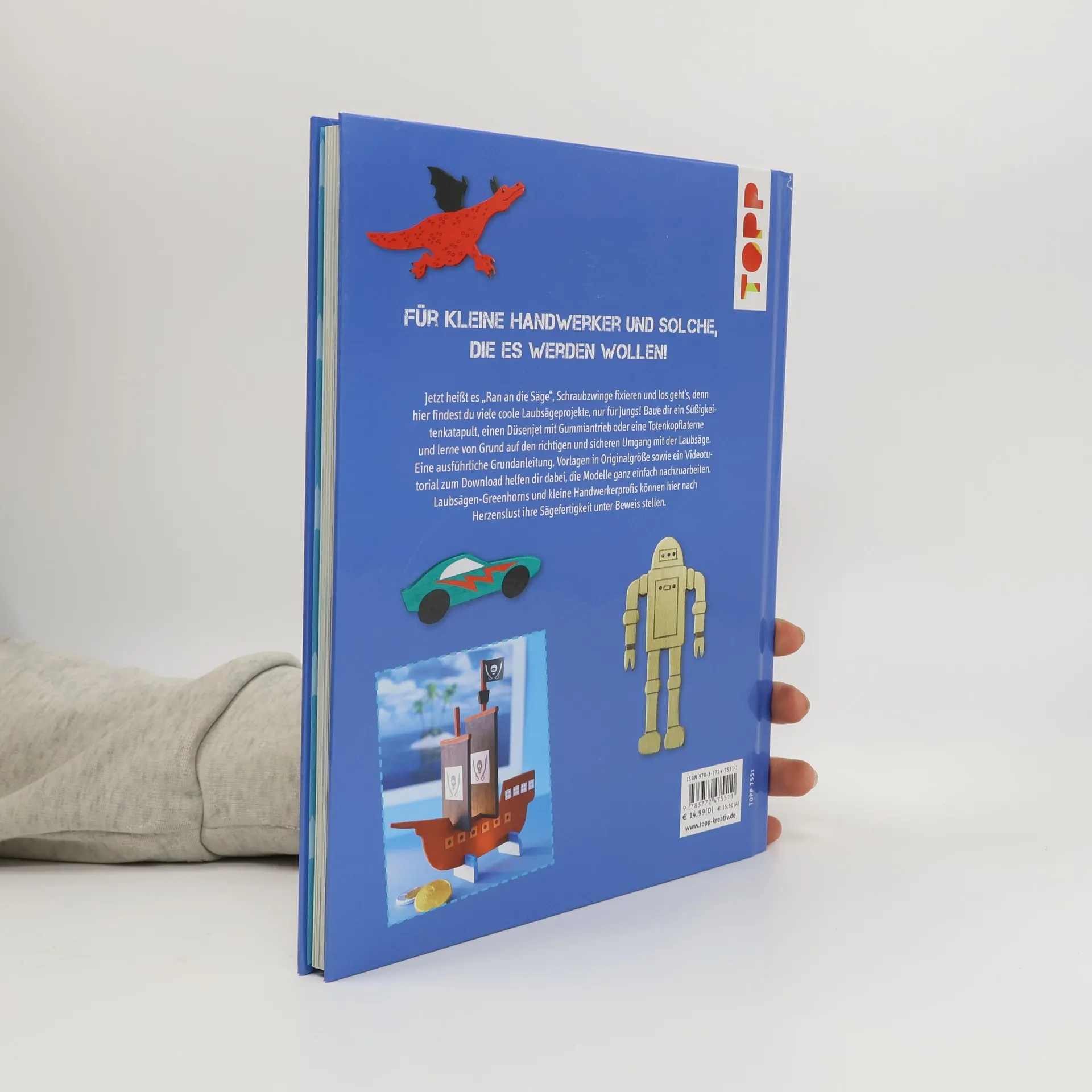In diesem Buch heißt es „Ran an die Laubsäge“, Schraubzwinge fixieren und los geht’s, denn hier gibt es viele coole Laubsägeprojekte speziell für Jungs zu entdecken. Die wichtigsten Grundlagen im Umgang mit Holz und der Laubsäge werden sowohl im Buch als auch mithilfe eines altersgerechten Videogrundkurses, der zum Download bereitsteht, vermittelt. Ob Steckdinos, Süßigkeitenkatapult, Düsenjet mit Gummiantrieb oder Totenkopflaterne – alle Ideen eignen sich zum Spielen, (Zimmer)Dekorieren und Verschenken und sind mit verschiedenen Schwierigkeitsstufen gekennzeichnet. Laubsägen-Greenhorns und kleine Handwerkerprofis können hier also nach Herzenslust ihre Sägefertigkeit unter Beweis stellen.