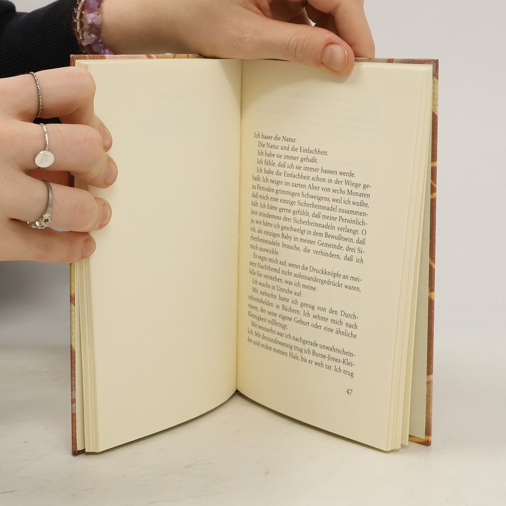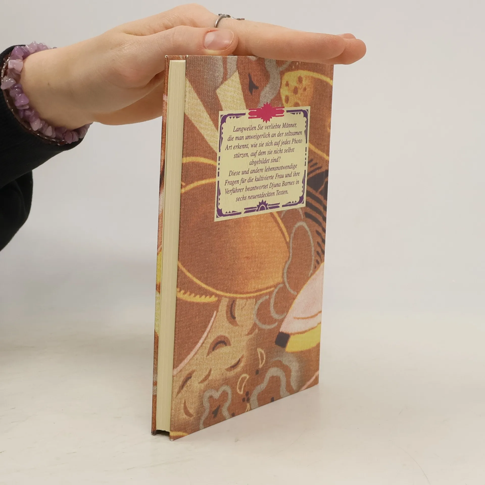 Geht es Ihnen auch so: Hassen Sie die Natur? Alles, was jung, einfach, praktisch, weiblich, kurz natürlich ist? Können Sie es auch nicht leiden, schlecht gelaunt zu sein, nach dümmlichen Mottos zu leben oder die Liebe für eine Zaubermacht zu halten? Möchten Sie gerne wissen, warum gerade Kinder zur Rechtfertigung der Existenz einer Frau herhalten müssen? Langweilen Sie verliebte Männer, die man unweigerlich an der seltsamen Art erkennt, wie sie sich auf jedes Foto stürzen, auf dem sie nicht selbst abgebildet sind? Diese und andere lebensnotwendige Fragen beantwortet Djuna Barnes in ihren Texten.