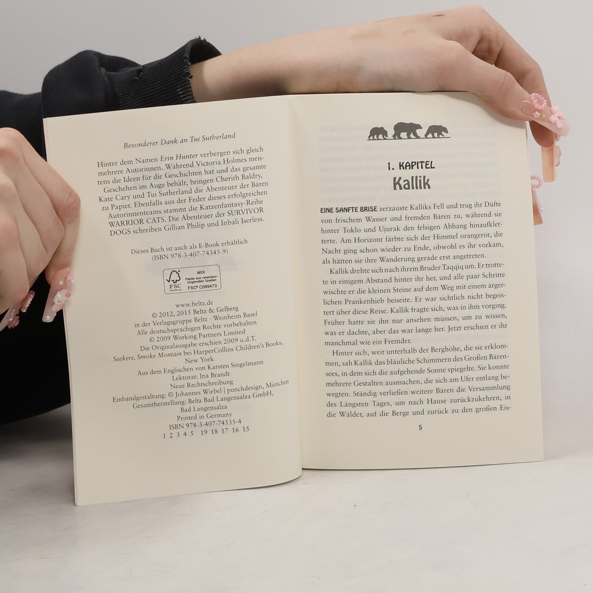 »Es ist so weit weg«, flüsterte der Alte. »Zu weit ... Wie soll eine Gruppe von unerfahrenen Jungen es je schaffen, allein dort hinzukommen? Nein, es ist zu gefährlich ...« Vom Großen Bärensee aus machen sich die jungen Bären auf die Suche nach der sagenumwobenen Letzten Großen Wildnis. Die Eisbärin Kallik überredet ihren Bruder Taqqiq, sich ihnen anzuschließen. Nun sind die Bären zu fünft – doch werden sie es alle schaffen, die lange Reise zu überstehen? Ein kluger alter Eisbär weist ihnen den Weg: Um in die Letzte Große Wildnis zu gelangen, müssen sie den gefährlichen Rauchberg überwinden. Die Legenden erzählen von einem schrecklichen Feuerriesen auf dem Berg, der von Bärenhunger getrieben ist ...