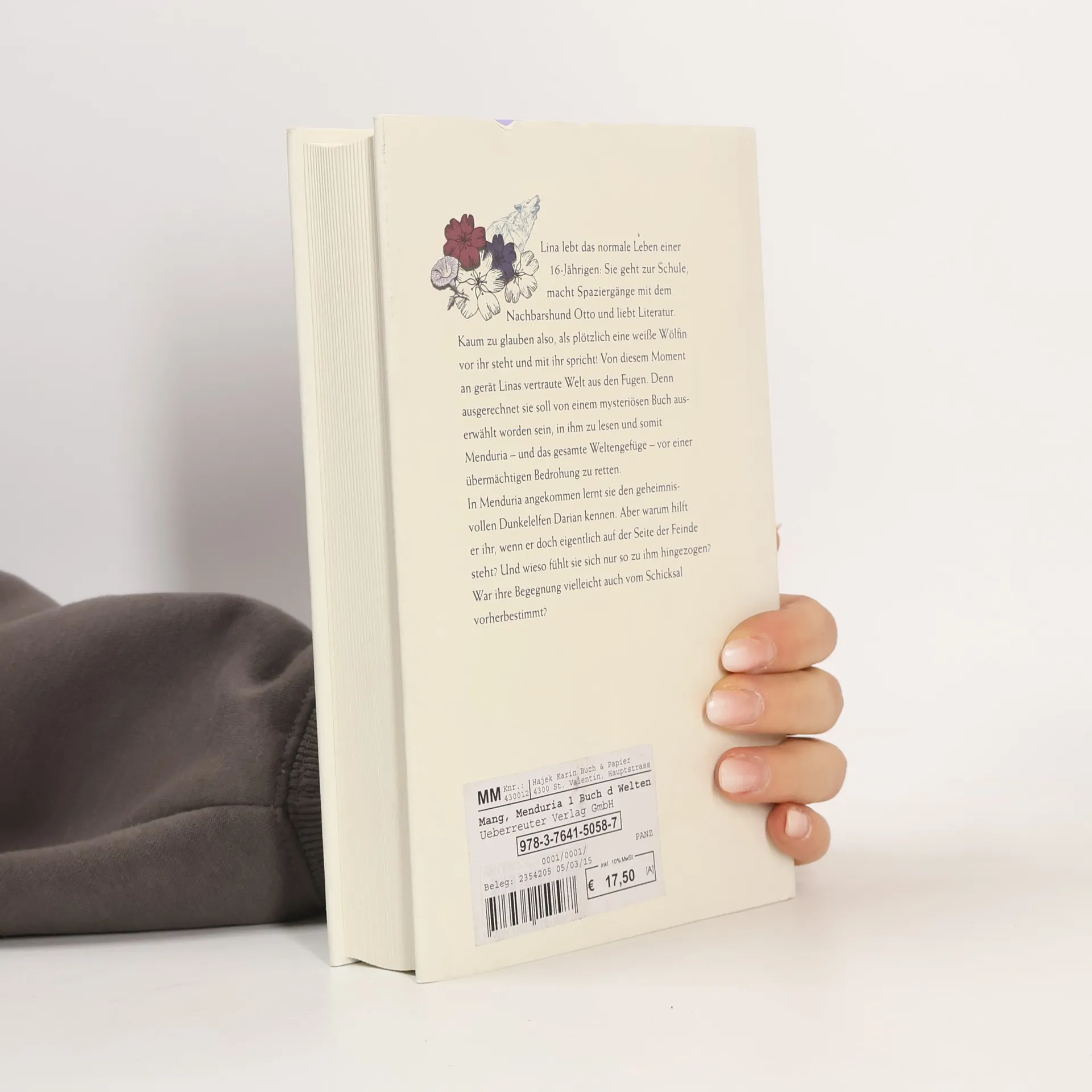 Lina lebt das normale Leben einer 16-Jährigen: sie geht zur Schule, macht Spaziergänge mit dem Nachbarshund Otto und liebt Literatur. Kaum zu glauben also, als plötzlich eine weiße Wölfin vor ihr steht und mit ihr spricht! Von diesem Moment an gerät Linas vertraute Welt aus den Fugen. Denn ausgerechnet sie soll von einem mysteriösen Buch auserwählt worden sein, in ihm zu lesen und somit Menduria - und das gesamte Weltengefüge - vor einer übermächtigen Bedrohung zu retten. In Menduria angekommen, lernt sie den geheimnisvollen Dunkelelfen Darian kennen. Aber warum hilft er ihr, wenn er doch eigentlich auf der Seite der Feinde steht? Und wieso fühlt sie sich nur so zu ihm hingezogen? War ihre Begegnung vielleicht auch vom Schicksal vorherbestimmt?