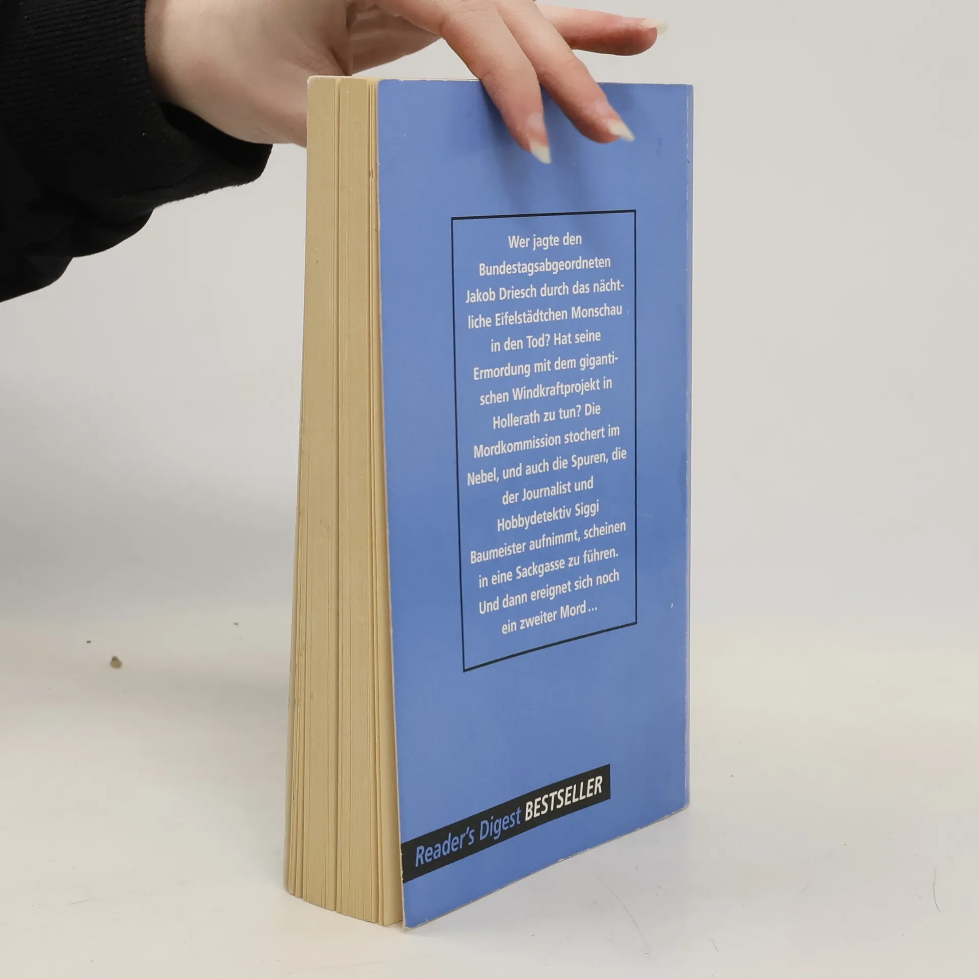 Der achte Band der Eifel-Serie. Wer jagte den Bundestagsabgeordneten Jakob Driesch durch das nächtliche Monschau in den Tod? Warum wurde die lebenslustige Annette von Hülsdonk vom Pferd geschossen? Die Mordkommission stochert im Nebel. Haben die Morde mit dem gigantischen Windkraftprojekt in Hollerath zu tun? Doch jede Spur, die der Journalist Siggi Baumeister, der Kriminalrat a. D. Rodenstock und dessen Frau Emma aufnehmen, scheint in eine Sackgasse zu führen.