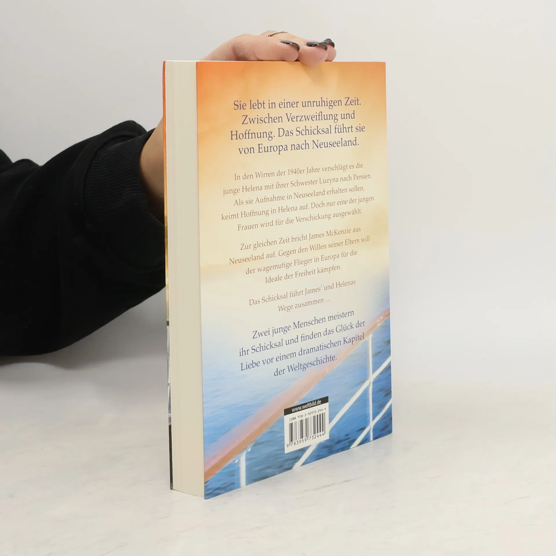 Sarah Lark legt nach ihren großen Familiensagas nun eine ergreifende Liebesgeschichte zwischen Europa und Neuseeland vor. Der wunderbar illustrierte Roman EINE HOFFNUNG AM ENDE DER WELT knüpft an die Familiengeschichte der McKenzies aus der bekannten Weiße-Wolke-Saga an. In den Wirren der 1940er Jahre verschlägt es die junge Polin Helena mit ihrer Schwester Luzyna nach Persien. Als sie Aufnahme in Neuseeland erhalten sollen, keimt Hoffnung in Helena auf. Doch nur eine der jungen Frauen wird für die Verschickung ausgewählt. Zur gleichen Zeit bricht James McKenzie aus Neuseeland auf. Gegen den Willen seiner Eltern will der wagemutige Flieger in Europa für die Ideale der Freiheit kämpfen.Das Schicksal führt James' und Helenas Wege zusammen ... Zwei junge Menschen meistern ihr Schicksal und finden das Glück der Liebe vor einem dramatischen Kapitel der Weltgeschichte.