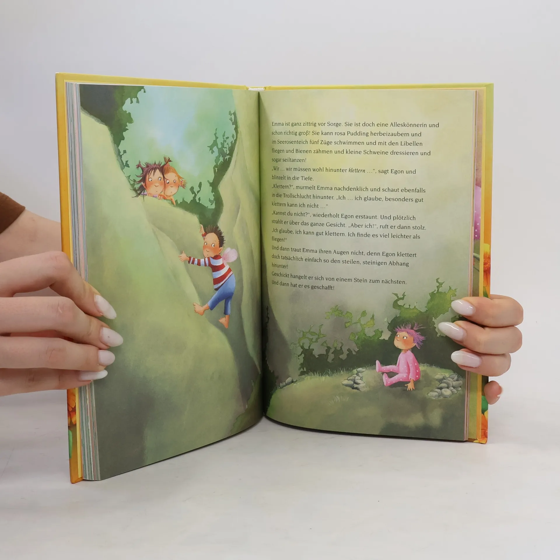 Immer muss Emma zu Hause helfen! Sie muss putzen, aufräumen oder auf ihre kleine Schwester aufpassen. Für Dinge, die Spaß machen, ist sie noch viel zu klein. Das sagen jedenfalls die Erwachsenen. Emma findet das nicht. Schließlich kann und weiß sie schon fast alles und hat so viele gute Ideen. Zusammen mit ihrem besten Freund Egon will sie alle gleich in die Tat umsetzen. „Los, Egon, schneller!“, ruft sie. Und schon wirbelt Emma los … Vier liebevoll illustrierte Geschichten über das Großwerden , die Kindern Mut machenund das Selbstbewusstsein fördern .