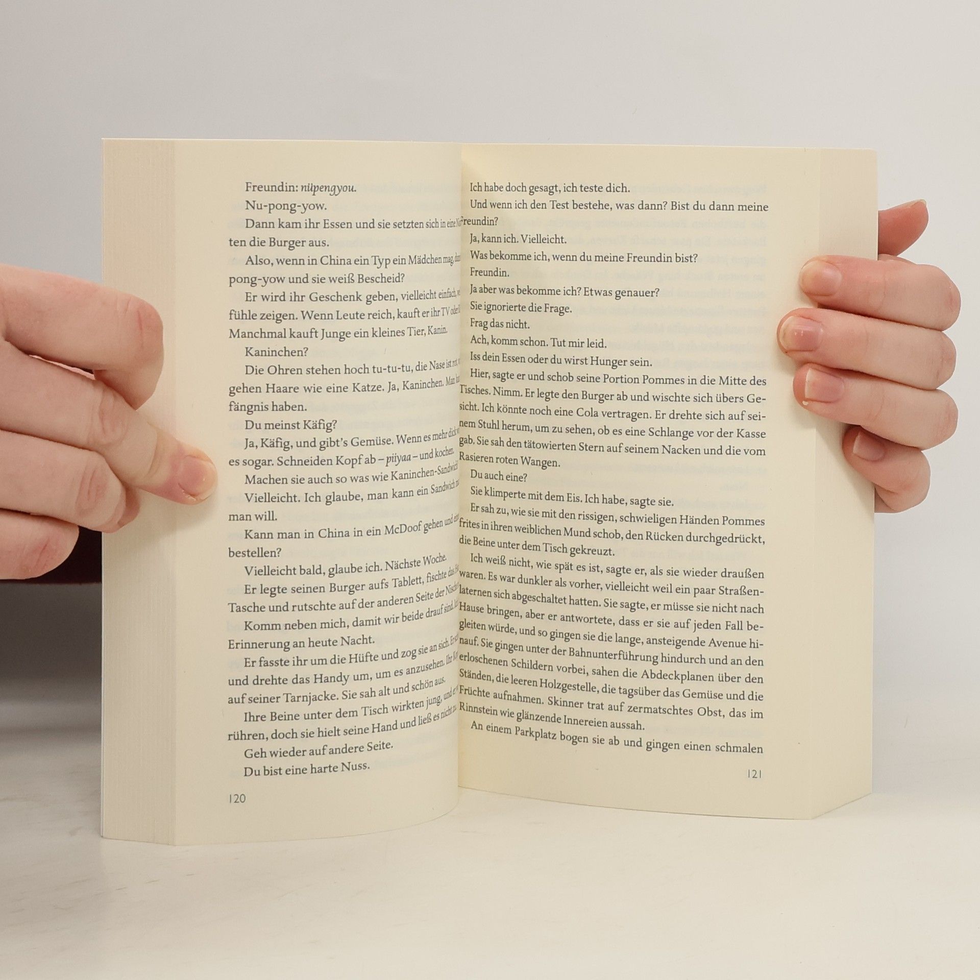 Die uigurische Kriegswaise Zou Lei hat es allein und mittellos bis in die USA geschafft. Illegal eingewandert und stets auf der Hut vor den Behörden, schlägt sie sich in New York mit Küchenjobs durch. Der Soldat Brad Skinner ist gerade zum dritten Mal aus dem Irak zurückgekehrt. Traumatisiert und arbeitslos begegnet er eines Tages Zou Lei, und eine Liebe zwischen Verzweiflung und Hoffnung beginnt. Auf der Suche nach Gemeinsamkeit und Halt durchstreifen sie die Stadt, treiben Fitness bis an den Rand der Erschöpfung. Doch inmitten der vielen Kulturen, der Heimatlosen und Überlebenskünstler, der Reichen und Armen, der Verrohung und Versöhnung braut sich ein Unheil zusammen, das sie für immer auseinander zu reißen droht. Atemlos begleitet der Leser im mal harten, mal weichen Wechsel von Licht und Schatten die Liebenden durch die Straßen New Yorks und wird sie nie mehr vergessen. Atticus Lish hat den großen Roman über die verletzte Seele Amerikas geschrieben - eine Geschichte über Liebe und Krieg, über Urbanität und über das Leben an den Rändern der Gesellschaft.
