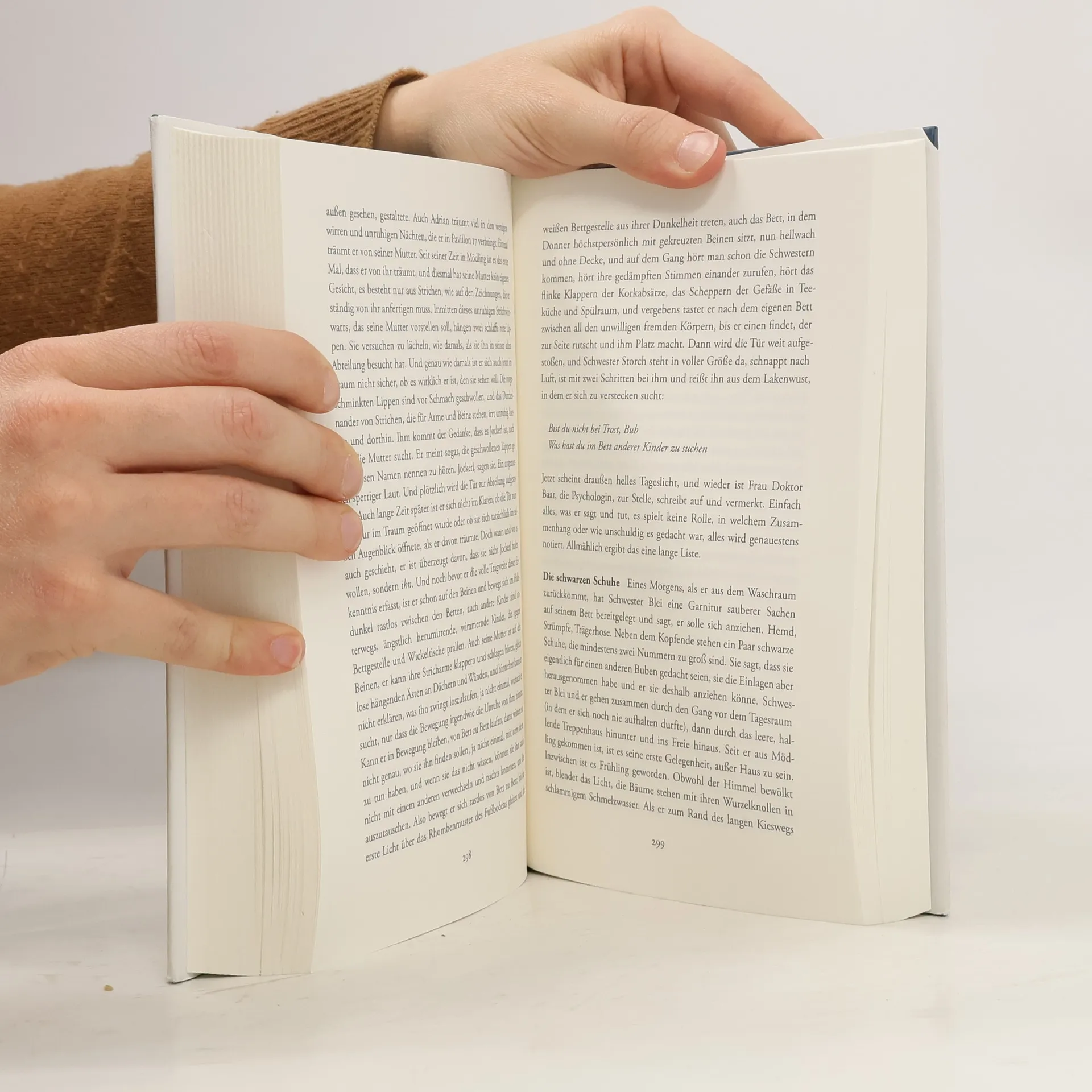 Adrian Ziegler, der aus einem sozial und erbbiologisch »minderwertigen« Elternhaus stammt, wird im Alter von elf Jahren nach Steinhof gebracht. Dort gehen für die Kinder Phantasie und Wirklichkeit ineinander über. Der Anblick des Berges vor dem Fenster weckt bei ihnen die Hoffnung auf einen Schutzengel, der zur Rettung naht. Adrian Ziegler, der aus einem sozial und erbbiologisch »minderwertigen« Elternhaus stammt, wird im Alter von elf Jahren nach Steinhof gebracht. Dort gehen für die Kinder Phantasie und Wirklichkeit ineinander über. Der Anblick des Berges vor dem Fenster weckt bei ihnen die Hoffnung auf einen Schutzengel, der zur Rettung naht. Adrians Aufsässigkeit, einschließlich einer kurzzeitigen Flucht, lassen ihn sämtliche Stationen dieser Hölle des Nazi-Systems durchlaufen. Er kommt als Anschauungsobjekt in den Vorlesungssaal und schließlich auf die Krankenstation. Dort arbeitet Anna Katschenka, die den Umgang mit Kindern liebt. Doch Loyalität und Treue lassen sie fraglich erscheinende ärztliche Anweisungen strikt befolgen. Sie macht sich dadurch mitschuldig am Leiden und Tod zahlreicher Kinder. Steve Sem-Sandberg gelingt eine eindrucksvolle Schilderung des Lebens über mehr als sechs Jahrzehnte, wie es sich auch am finstersten Ort gestaltet.