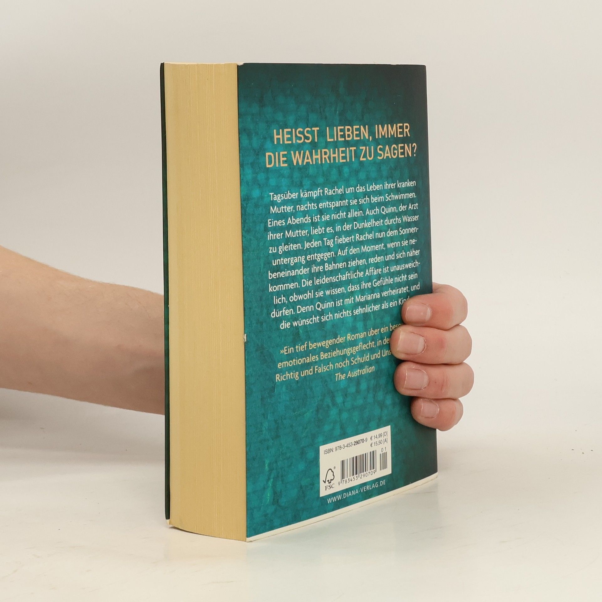 Heißt lieben, immer die Wahrheit zu sagen? Tagsüber kämpft Rachel um das Leben ihrer kranken Mutter, nachts entspannt sie sich beim Schwimmen. Eines Abends ist sie nicht allein. Auch Quinn, der Arzt ihrer Mutter, liebt es, in der Dunkelheit durchs Wasser zu gleiten. Jeden Tag fiebert Rachel nun dem Sonnenuntergang entgegen. Dem Moment, wenn sie nebeneinander ihre Bahnen ziehen, reden und sich näherkommen. Die leidenschaftliche Affäre ist unausweichlich, obwohl sie wissen, dass ihre Gefühle nicht sein dürfen. Denn Quinn ist mit Marianna verheiratet, und die wünscht sich nichts sehnlicher als ein Kind …
