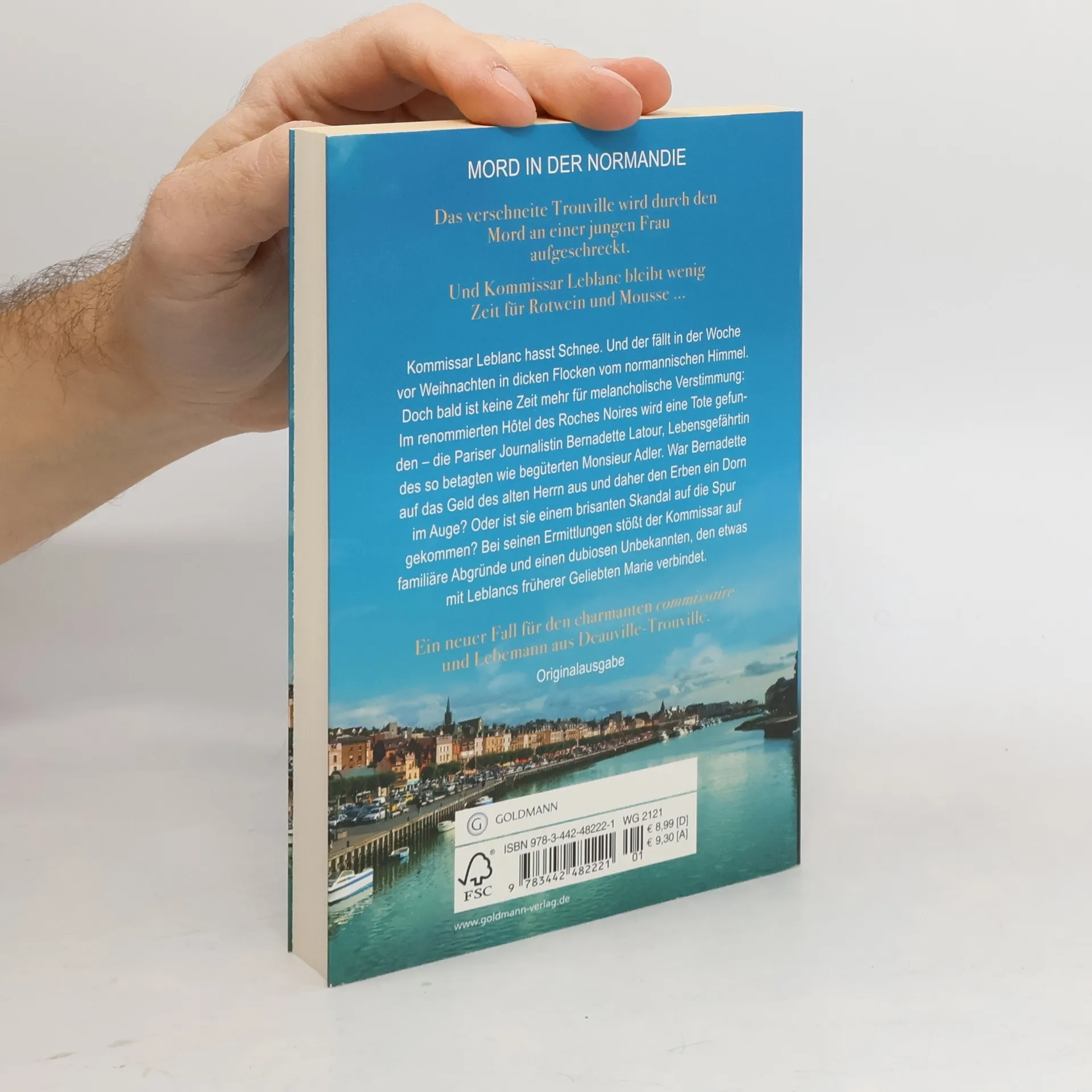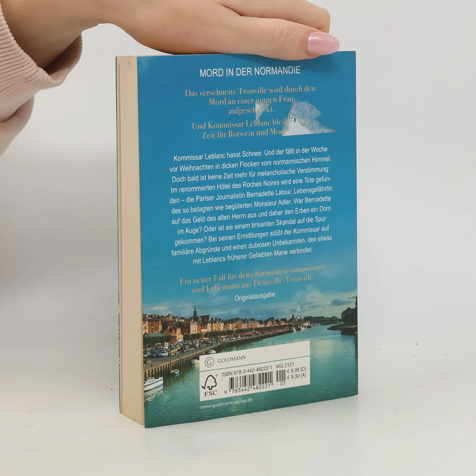 Der zweite Fall für den commissaire und Lebemann aus Deauville-Trouville. Kommissar Leblanc hasst Schnee. Und der fällt in der Woche vor Weihnachten in dicken Flocken vom normannischen Himmel. Doch bald ist keine Zeit mehr für melancholische Verstimmung: Im renommierten „Hôtel des Roches Noires“ wird eine Tote gefunden – die Pariser Journalistin Bernadette Latour, Lebensgefährtin des so betagten wie begüterten Monsieur Adler. War Bernadette auf das Geld des alten Herrn aus und daher den Erben ein Dorn im Auge? Oder ist sie einem brisanten Skandal auf die Spur gekommen? Bei seinen Ermittlungen stößt der Kommissar auf familiäre Abgründe, eine Schönheitsklinik in der Nähe von Trouville und einen dubiosen Unbekannten, den etwas mit Leblancs früherer Geliebten Marie verbindet.