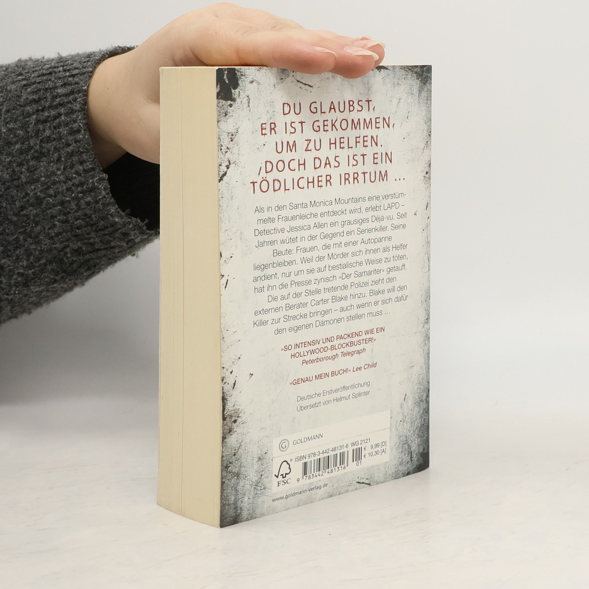 Der 2. Fall für den brillanten FBI-Berater Carter Blake. Als in den Santa Monica Mountains eine verstümmelte Frauenleiche entdeckt wird, erlebt LAPD Detective Jessica Allen ein grausiges Déjà-vu. Seit Jahren wütet in der Gegend ein Serienkiller. Seine Beute: Frauen, die mit einer Autopanne liegenbleiben. Weil der Mörder sich ihnen als Helfer andient, nur um sie auf bestialische Weise zu töten, hat ihn die Presse zynisch „Der Samariter“ getauft. Die auf der Stelle tretende Polizei zieht den externen Berater Carter Blake hinzu. Blake will den Killer zur Strecke bringen – auch wenn er sich dafür den eigenen Dämonen stellen muss ...