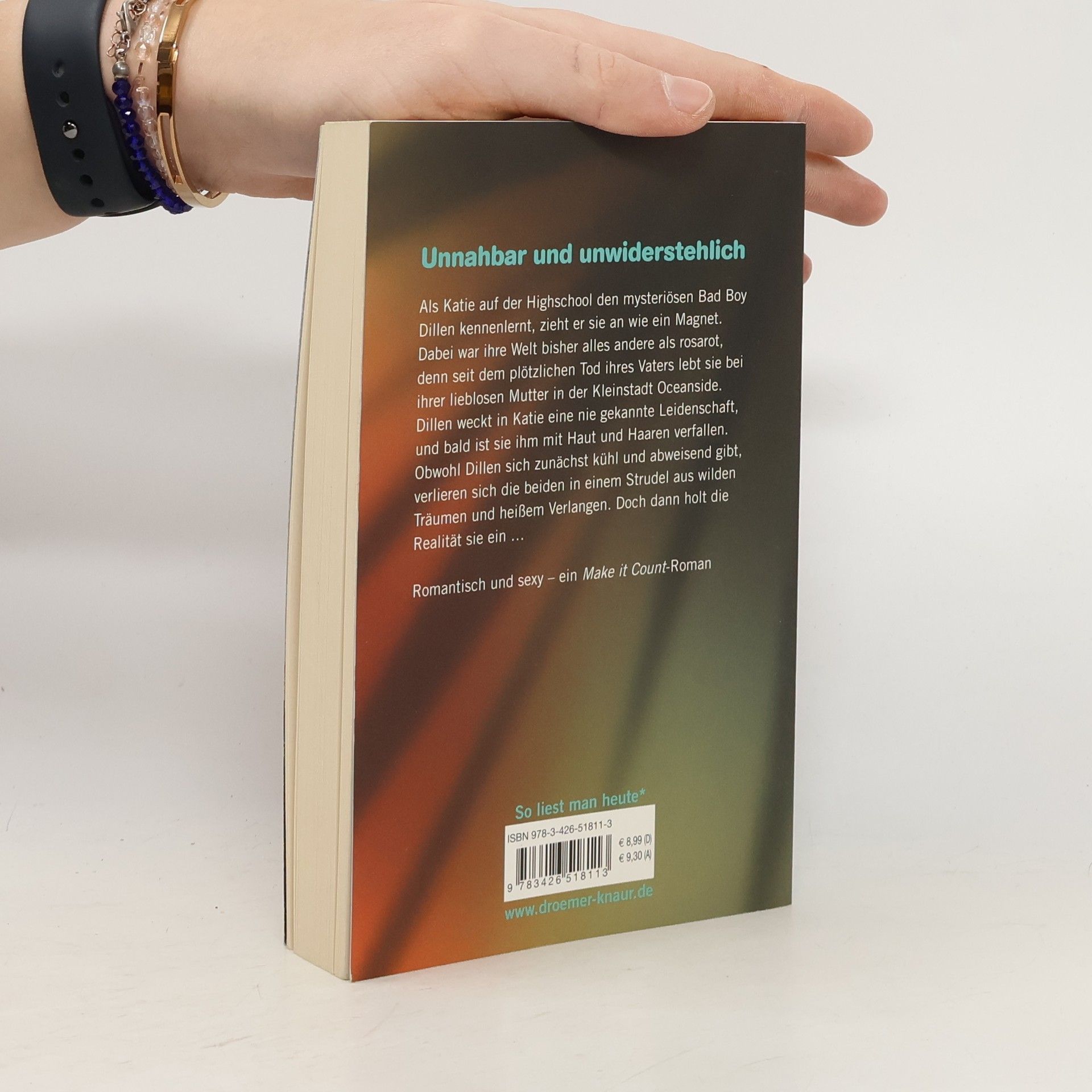 Romantisch und sexy – Die erste „Ocenside-Love-Story“ der „Make it count“-Reihe von Ally Taylor und Carrie Price Als Katie auf der Highschool den mysteriösen Bad Boy Dillen kennenlernt, zieht er sie an wie ein Magnet. Dabei war ihre Welt bisher alles andere als rosarot, denn seit dem plötzlichen Tod ihres Vaters lebt sie bei ihrer lieblosen Mutter in der Kleinstadt Oceanside. Dillen weckt in Katie eine nie gekannte Leidenschaft, und bald ist sie ihm mit Haut und Haaren verfallen. Obwohl Dillen sich zunächst kühl und abweisend gibt, verlieren sich die beiden in einem Strudel aus wilden Träumen und heißem Verlangen. Doch dann holt die Realität sie ein … Alle Bände der New-Adult-Serie „Ocenside-Love-Stories“ von Ally Taylor und Carrie Price: Band 1 - „Make it count - Gefühlsgewitter“ Band 2 - „Make it count - Gefühlsbeben“ Band 3 - „Make it count - Dreisam“ Band 4 - „Make it count - Sommersturm“