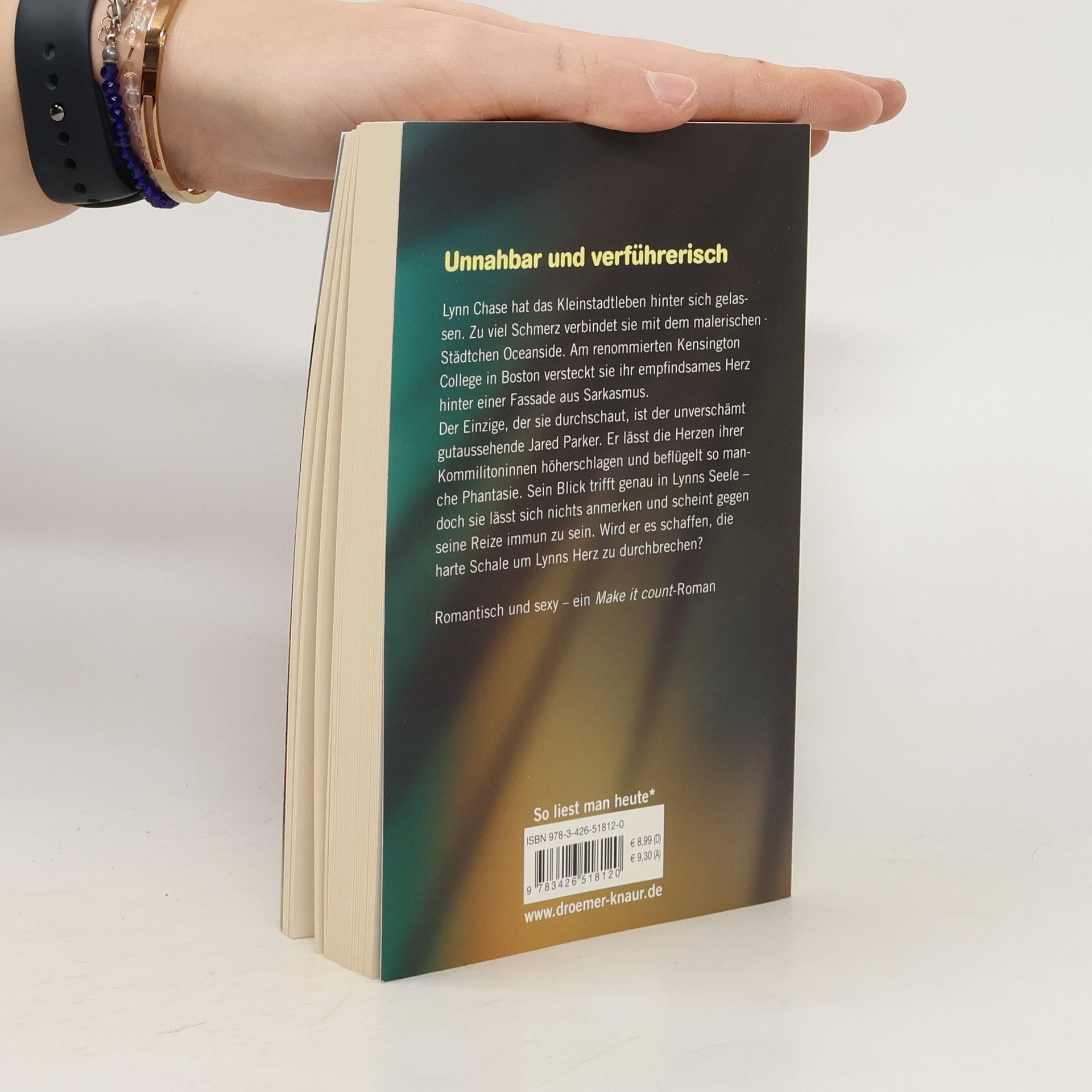 Prickelnd und aufregend – Die zweite „Ocenside-Love-Story“ der „Make it count“-Reihe von Ally Taylor und Carrie Price Lynn hat das Kleinstadtleben hinter sich gelassen. Zu viel Schmerz verbindet sie mit Oceanside. Am College in Boston gibt sie sich kühl und sarkastisch. Der Einzige, der sie durchschaut, ist der unverschämt gut aussehende Jared Parker. Sein bloßer Anblick lässt die Mädchen reihenweise dahinschmelzen. Nur Lynn scheint gegen seine Reize immun zu sein. Aber wieso hat sie trotzdem jedes Mal ein mulmiges Gefühl, wenn sie ihn sieht? Wird er es schaffen, die harte Schale um Lynns Herz zu durchbrechen? Alle Bände der New-Adult-Serie „Ocenside-Love-Stories“ von Ally Taylor und Carrie Price: Band 1 - „Make it count - Gefühlsgewitter“ Band 2 - „Make it count - Gefühlsbeben“ Band 3 - „Make it count - Dreisam“ Band 4 - „Make it count - Sommersturm“