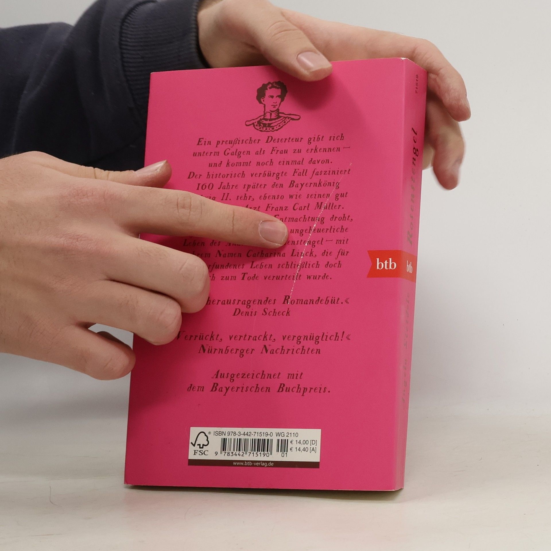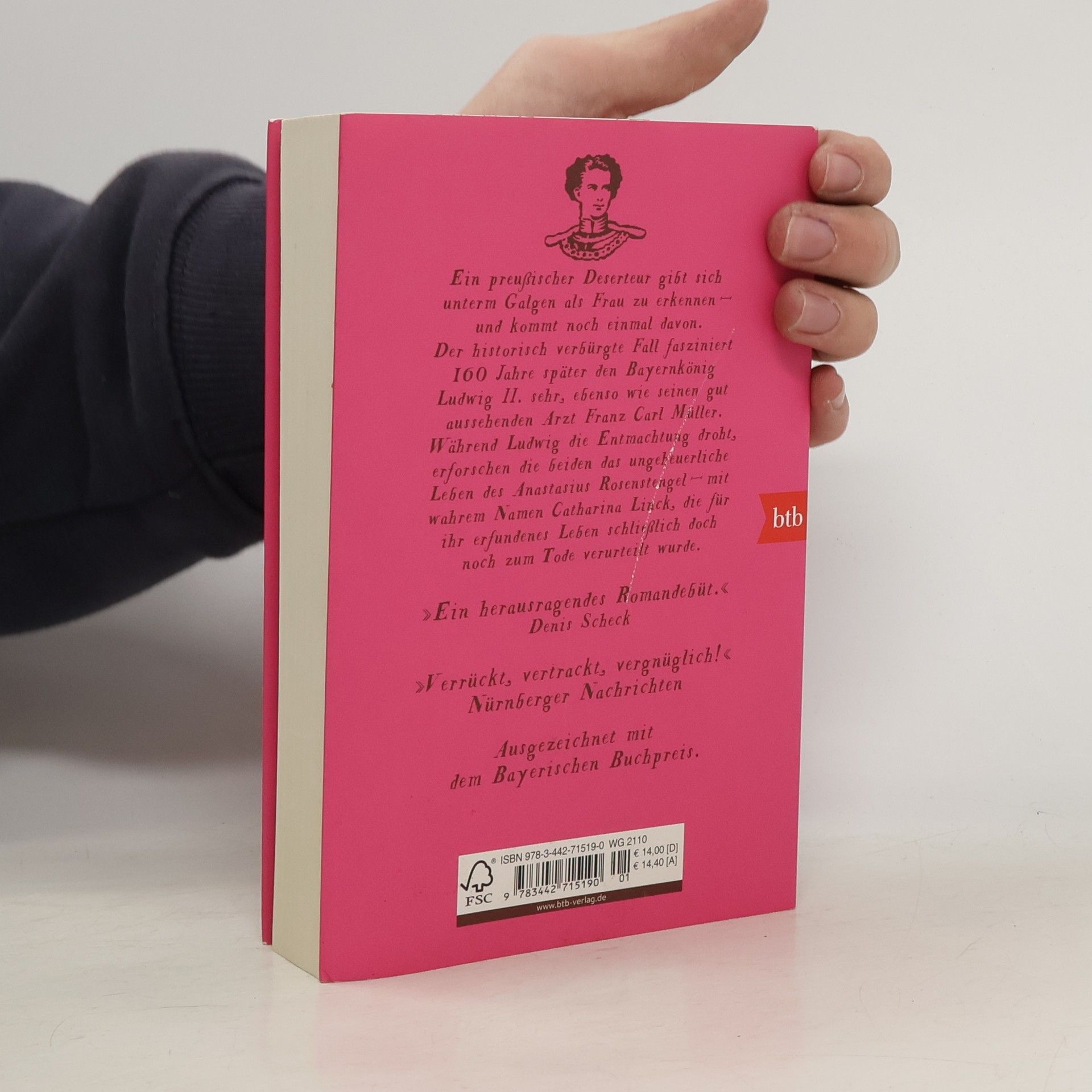 Preußische Soldaten jagen einen Deserteur. Als sie ihn überwältigen, staunen sie nicht schlecht: Der Flüchtige gibt sich als Frau zu erkennen. Der historisch verbürgte Fall interessiert 160 Jahre später den Bayernkönig Ludwig II sehr, ebenso wie seinen gut aussehenden Arzt Carl Müller. Während Ludwig die Entmachtung droht, erforschen die beiden das ungeheuerliche Leben des Anastasius Rosenstengel – mit wahrem Namen Catharina Link, die für ihr erfundenes Leben zum Tode verurteilt wurde. »Zwei Menschen mit Doppelleben bilden das Gerüst des Debütromans von Angela Steidele: Catharina Linck, die sich als Anastasius Rosenstengel Anfang des 18. Jahrhunderts in Männerkleidern durchs Leben schlug, und Ludwig II., der sich aus der Politik in die Welt der Kunst flüchtete.« SZ