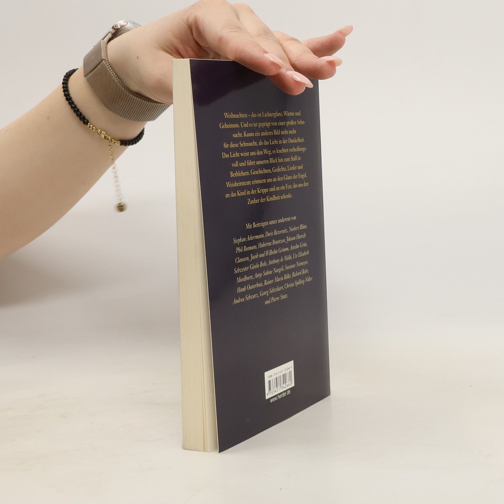 Weihnachten, das ist Lichterglanz und Wärme, Geheimnis und Verheißung, ein Fest, das uns mit all unseren Sinnen gefangen nimmt und uns Jahr für Jahr in seinen Bann zieht. Bekannte Autorinnen und Autoren erzählen von der Heiligen Nacht und der Geburt des Kindes. Ein wunderbarer Begleiter, der die vielen Facetten des Weihnachtsfestes zum Leuchten bringt. Mit Texten unter anderem von: Anselm Grün, Andrea Schwarz, Christa Spilling-Nöker, Pierre Stutz, Notker Wolf, Phils Bosmans, Anthony de Mello.