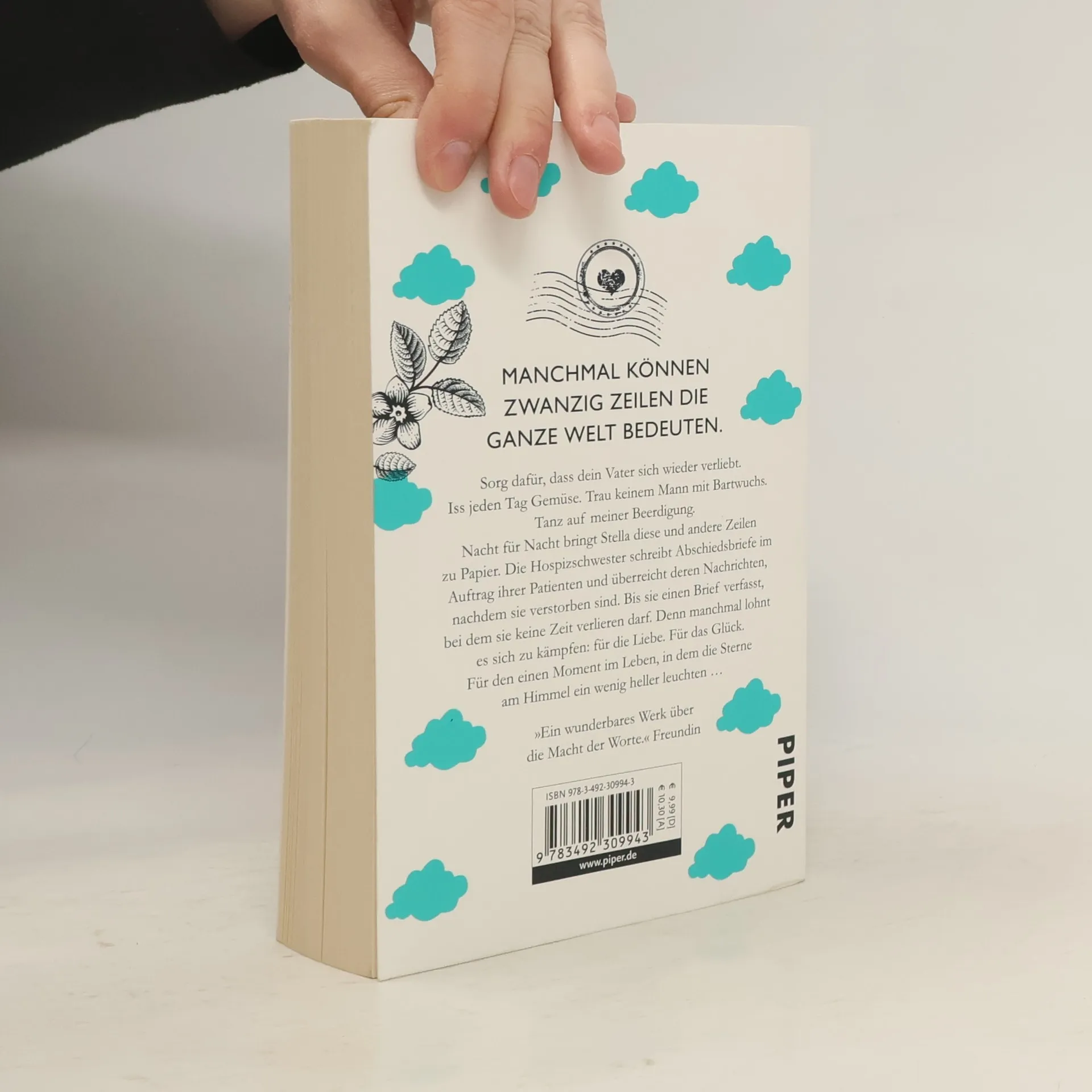 Sorg dafür, dass dein Vater sich wieder verliebt. Iss jeden Tag Gemüse. Trau keinem Mann mit übermäßigem Bartwuchs. Tanz auf meiner Beerdigung zu Dean Martin. Nacht für Nacht bringt Stella diese und andere Zeilen zu Papier. Die Hospizschwester schreibt Abschiedsbriefe im Auftrag ihrer schwer kranken Patienten und überreicht deren Nachrichten, nachdem sie verstorben sind. Bis sie einen Brief verfasst, bei dem sie keine Zeit verlieren darf. Denn manchmal lohnt es sich zu kämpfen: Für die Liebe. Für das Glück. Für den einen Moment im Leben, in dem die Sterne am Himmel ein wenig heller leuchten …