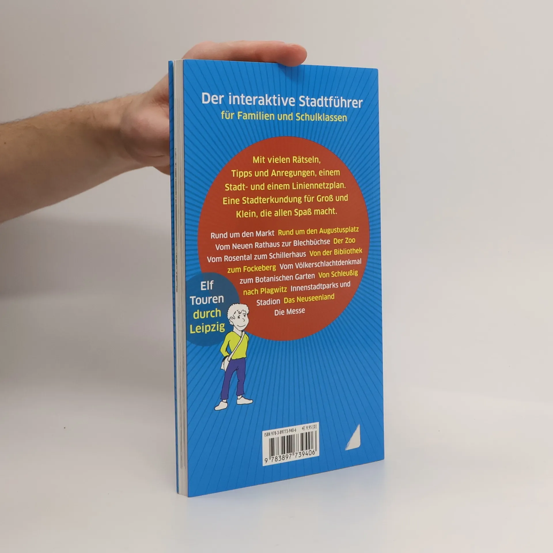 Der Reiseführer „Leipzig mit Kindern“ vermittelt auf kindgerechte Art und Weise einen umfassenden Überblick über die Stadt und ihre Sehenswürdigkeiten und weist dabei auf besondere Angebote für Kinder hin. In elf Touren führt das Buch zu Orten in Leipzig, für die sich auch schon der Nachwuchs begeistern kann. Begleitet werden die Leser dabei von dem drolligen und neugierigen Zeitungsjungen Leo, der immer etwas Wissenswertes zu berichten weiß. Die meisten Touren sind innenstadtnah und lassen sich zu Fuß bewältigen. Ob es zum Markt mit dem Alten Rathaus geht, zum Augustusplatz mit dem Gewandhaus und dem berühmten Uni-Riesen, ins westliche Leipzig zur Spinnerei und zum Tapetenwerk oder zum östlich gelegenen Völkerschlachtdenkmal – überall gibt es Spannendes zu entdecken. Andere Ziele eignen sich gut für Radtouren. Man kann zum Beispiel Spielplätze in den Innenstadtparks erobern, den Kletterwald im Neuseenland entdecken, im Wildpark wandern und natürlich den Zoo mit dem Pongo- und Gondwanaland besuchen. Interessante Fotos, lustige Illustrationen und spannende Rätsel regen zum Mitmachen an. Lagepläne und viele praktische Tipps runden die Tour-Informationen ab.