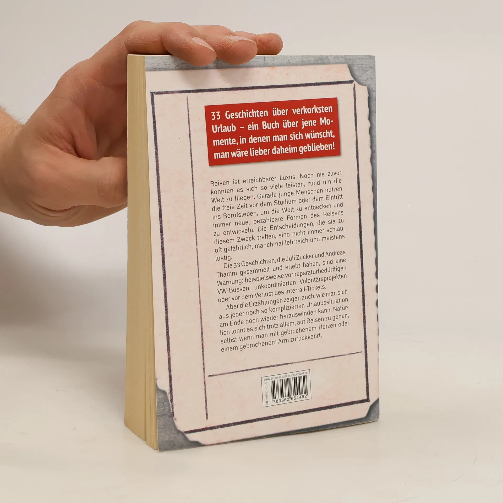 Reisen kann so schön sein – und gleichzeitig so schnell schiefgehen. Wie hält man es in einem isländischen Fischerdorf aus, wenn man den Schlafplatz über drei Wochen mit 15 anderen teilen muss? Was tun, wenn man versehentlich illegal nach Bolivien eingereist ist? Und wie erklärt man einer wütenden 80-jährigen Polin, dass man kein Wort Polnisch versteht? Die jungen Menschen in diesem Buch haben endlose thailändische Nächte erlebt, schwedische Floßfahrten überstanden und verschollene Indio-Dörfer in Guatemala besucht. Ihre Geschichten zeigen, wie herausfordernd es sein kann, sich den Naturverhältnissen zu stellen, landesspezifisches Essen zu vertragen und wochenlang mit den besten Freunden auszukommen. In 33 Erzählungen über missratene Urlaube berichten Juli Zucker und Andreas Thamm von Reisen, die schrecklicher nicht enden konnten. Trotz der Leichtigkeit, ein Ticket zu buchen, treten immer wieder unerwartete Schwierigkeiten auf, die gemeistert werden müssen. So plant Andreas mit seiner Freundin einen romantischen Urlaub auf den Azoren und wacht schließlich mit zerrissener Hose neben einem Straßenhund auf. Oder Benjamin, Philipp, David und Juli, die mit dem VW-Bus durch Mazedonien reisen und von einem Straßenkünstler mit Panflöte verfolgt werden. Reisen bildet und macht Spaß, doch manchmal wünscht man sich sehnlichst, zu Hause geblieben zu sein.