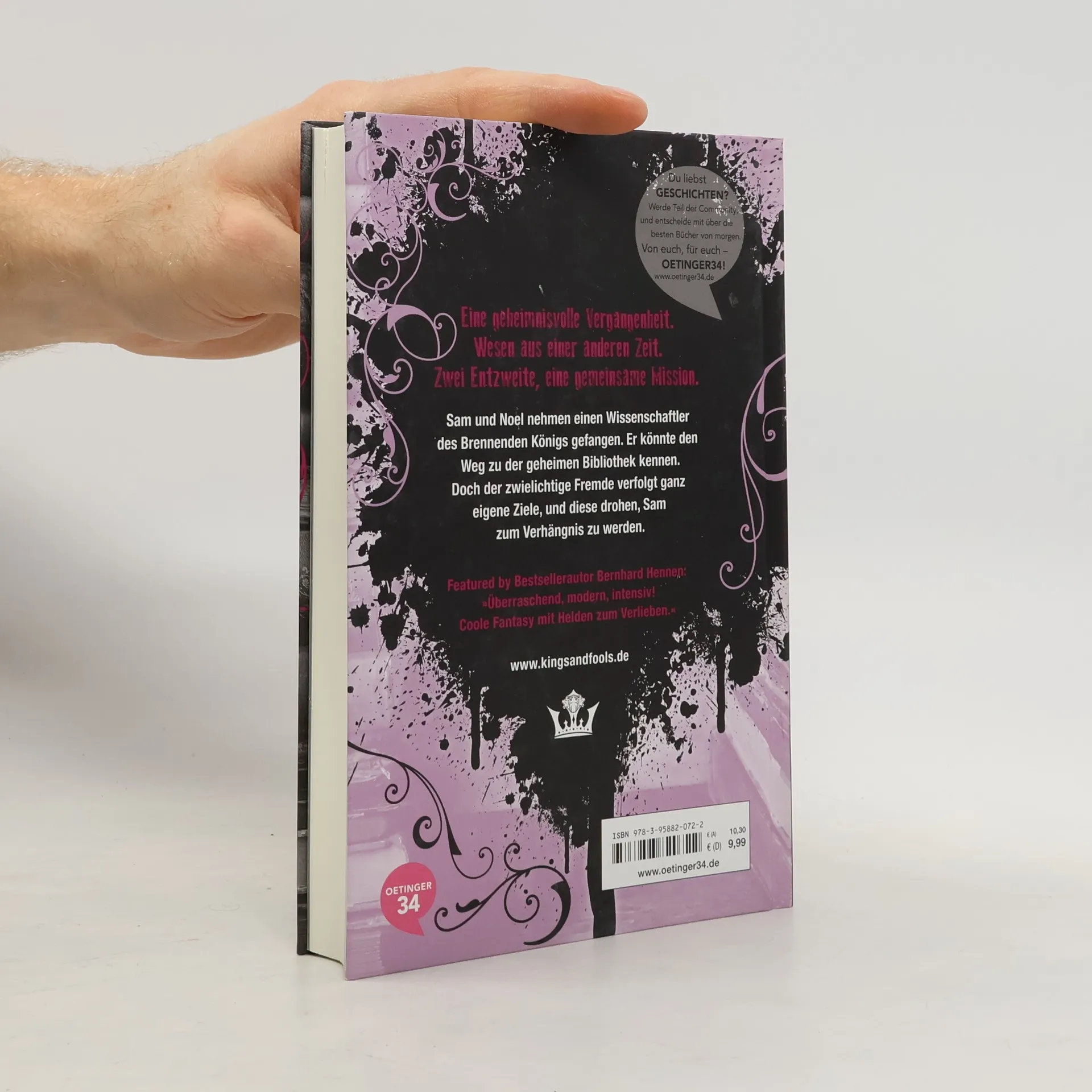 Eine geheimnisvolle Vergangenheit. Wesen aus einer anderen Zeit. Zwei Entzweite, eine gemeinsame Mission Band 4 der modernen High-Fantasy-Reihe mit Mysteryelementen, featured by Bernhard Hennen. Sam und Noel nehmen einen Wissenschaftler des brennenden Königs gefangen. Er könnte den Weg zu der geheimen Bibliothek kennen. Doch der zwielichtige Fremde verfolgt ganz eigene Ziele, und diese drohen, Sam zum Verhängnis werden.