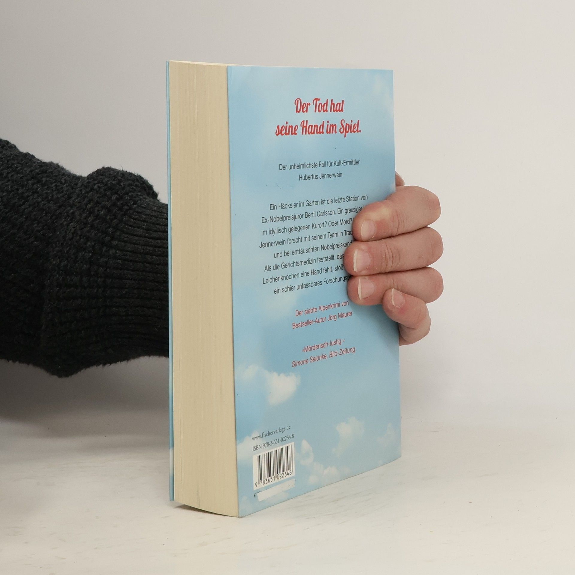 Der Tod hat seine Hand im Spiel. Der unheimlichste Fall von Kult-Ermittler Hubertus Jennerwein Der siebte Alpenkrimi von Bestseller-Autor Jörg Maurer Im idyllisch gelegenen Kurort fühlt sich Bertil Carlsson, ehemaliges Mitglied der Nobelpreisjury für Medizin, ganz zu Hause, ist seit Jahren im Trachten- und Heimatverein. Gerade hat er noch im Garten gearbeitet. Kurz danach macht seine Frau einen grausigen Fund – im großen Häcksler. War es ein Unfall? Oder doch Mord? Kommissar Jennerwein und sein bewährtes Team forschen unter hartleibigen Brauchtumswächtern und neidischen Nobelpreiskandidaten. Da meldet die Gerichtsmedizin: im Puzzle der Leichenknochen fehlt eine Hand. Als Jennerwein nach ähnlichen Fällen sucht und ein gruseliges Forschungsprojekt entdeckt, zweifelt er, ob er diesen Fall in den Griff bekommen wird…