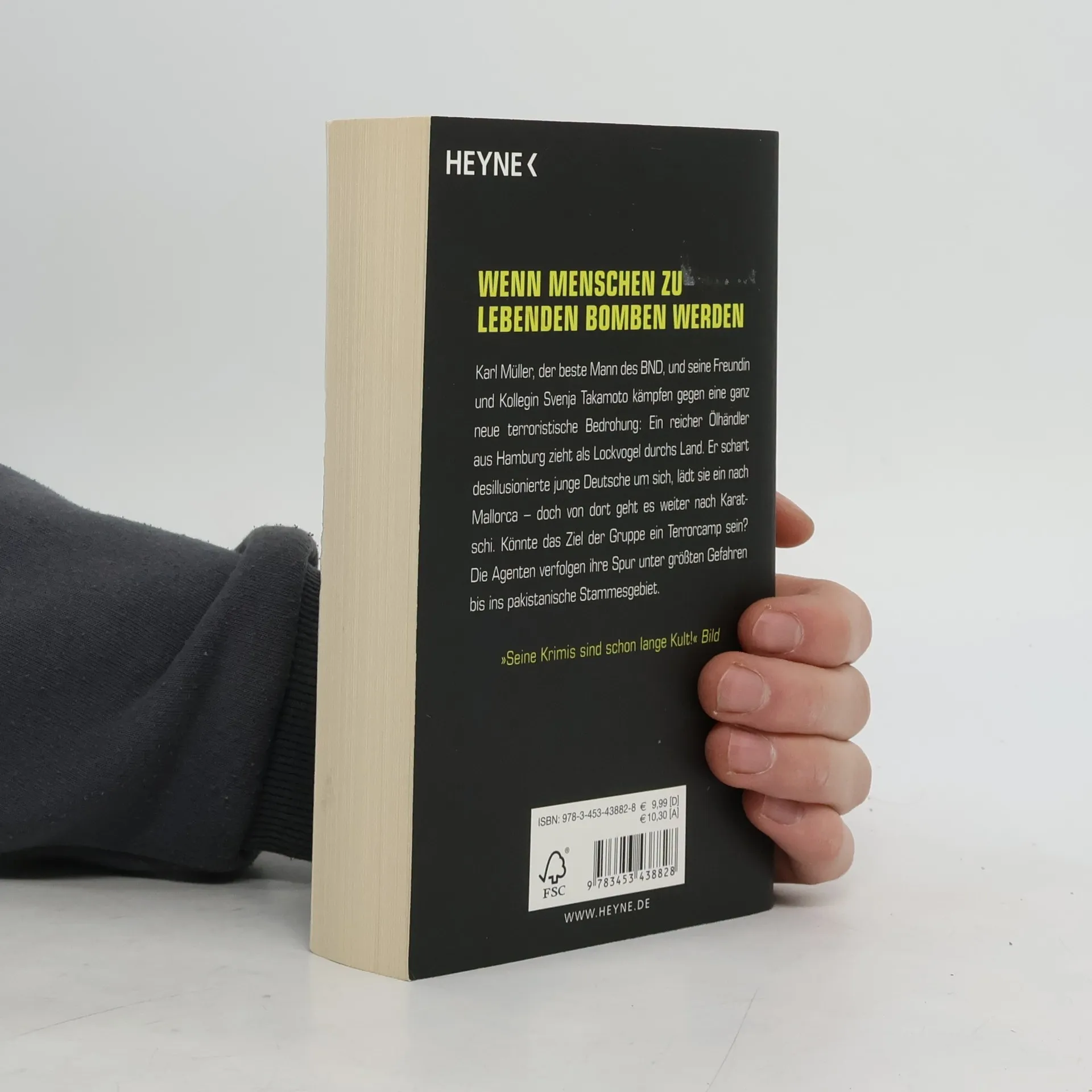 Karl Müller, der beste Mann des BND, und seine Freundin und Kollegin Svenja Takamoto kämpfen gegen eine ganz neue terroristische Bedrohung: Ein reicher Ölhändler aus Hamburg zieht als Lockvogel durchs Land. Er schart desillusionierte junge Deutsche um sich, lädt sie ein nach Mallorca – doch von dort geht es plötzlich weiter nach Karatschi. Könnte das Ziel der Gruppe ein Terrorcamp sein? Die Agenten verfolgen ihre Spur unter größten Gefahren bis ins pakistanische Stammesgebiet.