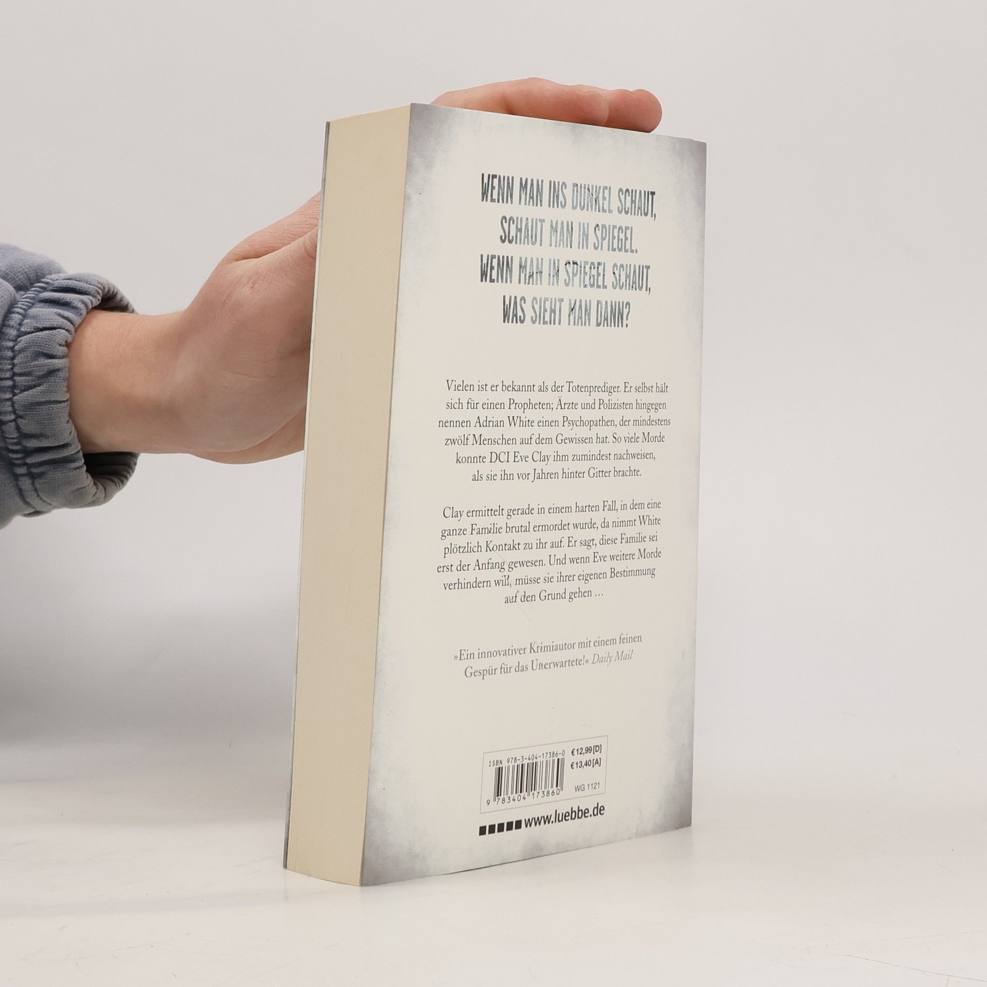 Vielen ist er bekannt als der Totenprediger. Er selbst hält sich für einen Propheten; Ärzte und Polizisten hingegen nennen Adrian White einen Psychopathen, der mindestens zwölf Menschen auf dem Gewissen hat. So viele Morde konnte DCI Eve Clay ihm zumindest nachweisen, als sie ihn vor Jahren hinter Gitter brachte. Clay ermittelt gerade in einem harten Fall, in dem eine ganze Familie brutal ermordet wurde, da nimmt White plötzlich Kontakt zu ihr auf. Er sagt, diese Familie sei erst der Anfang gewesen. Und wenn Eve weitere Morde verhindern will, müsse sie ihrer eigenen Bestimmung auf den Grund gehen …