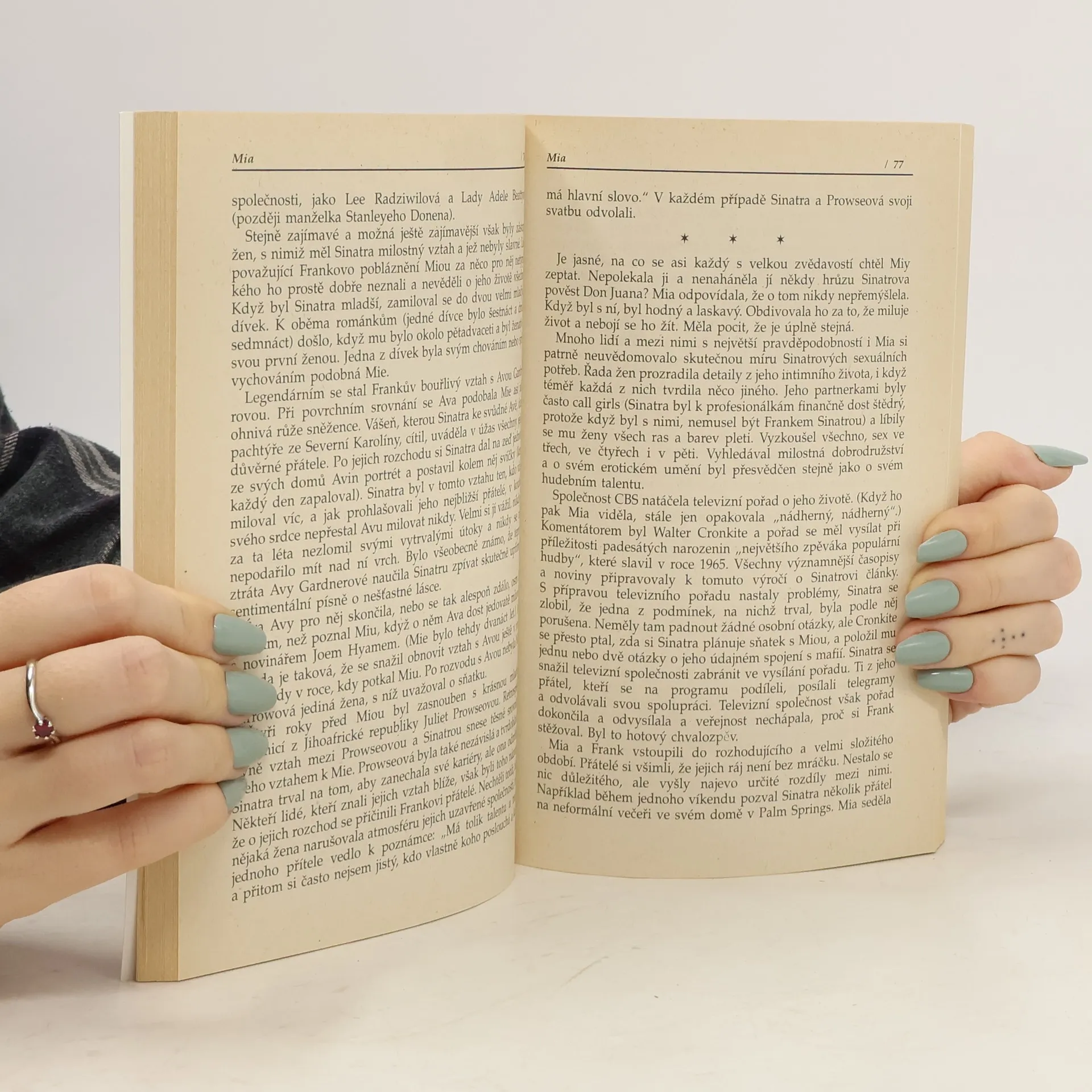 Kniha poukazuje na bouřlivý život Miy Farrow, na jeji početnou rodinu a rozvodový soudní proces s jejím dlouholetým partnerem Woody Allenem.
