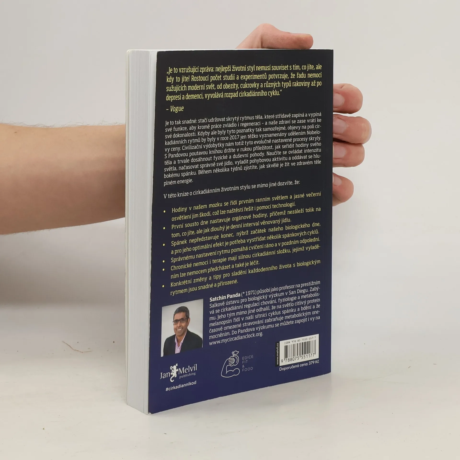 Je to tak snadné: stačí udržovat skrytý rytmus těla, které střídavě zapíná a vypíná své funkce, aby kromě práce zvládlo i regeneraci – a naše zdraví se zase vrátí ke své dokonalosti. Kdyby ale byly tyto poznatky tak samozřejmé, objevy na poli cirkadiánních rytmů by bylo v roce 2017 jen těžko vyznamenány udělaním Novelovy ceny. Civilizační výdobytky nám totiž tyto evolučně nastavené procesy skryly. S Pandovou poutavou knihou držíte v rukou příležitost, jak seřídit hodiny svého těla a trvale dosáhnout fyzické a duševní pohody. Naučíte se ovládat intenzitu světla, načasovat správně své jídlo, vyladit pohybovou aktivitu a oddávat se hlubokému spánku. Během několika týdnů zjistíte, jak skvělé je žít ve zdravém těle plném energie.