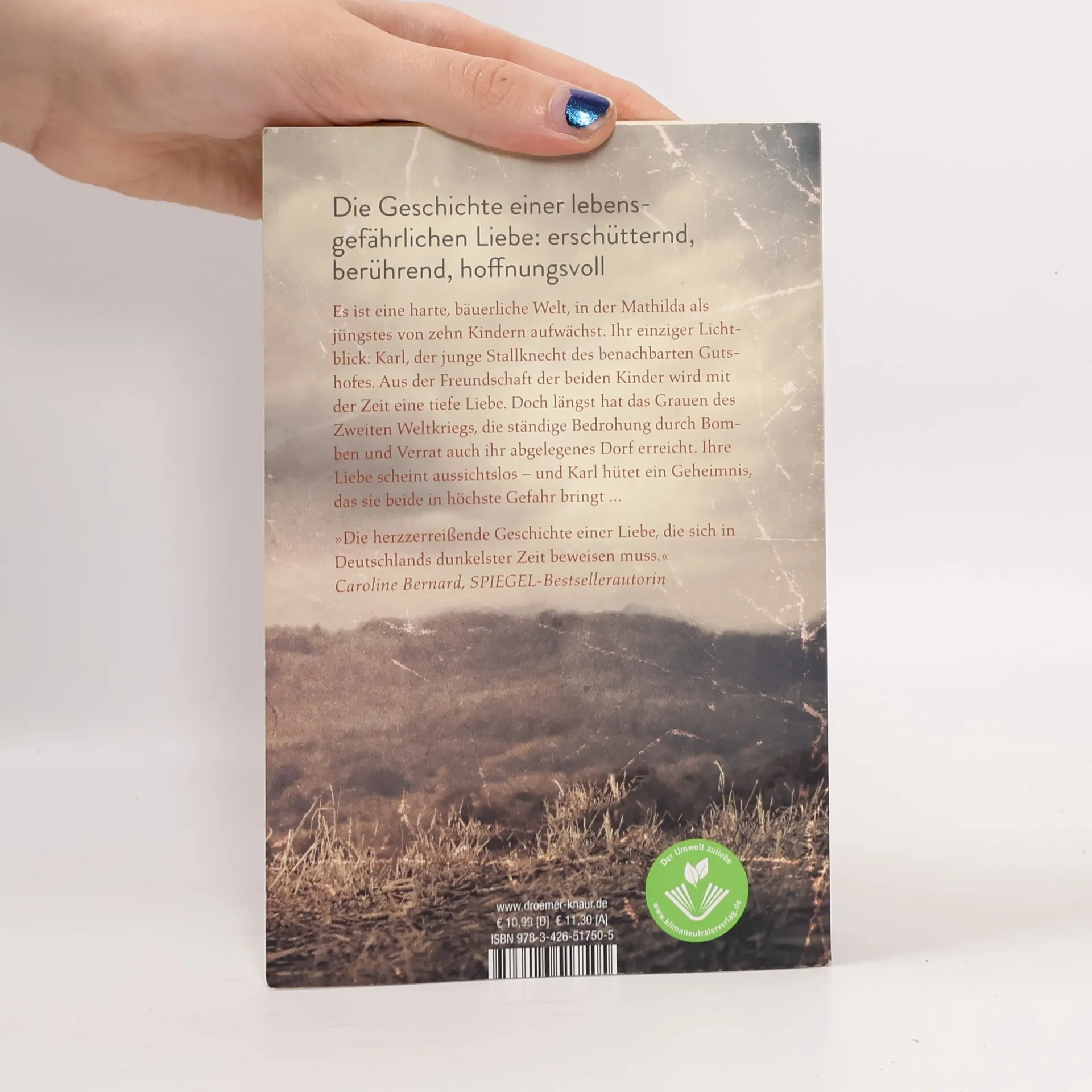 Erschütternd, berührend, hoffnungsvoll: Der historische Roman »Winterhonig« basiert auf wahren Ereignissen und erzählt die Geschichte einer lebensgefährlichen Liebe im Dritten Reich. Inspiriert von den Erlebnissen ihrer Großmutter, lässt uns Daniela Ohms die Zeit des Nationalsozialismus und den 2. Weltkrieg aus Sicht der Landbevölkerung erleben: das harte, entbehrungsreiche Leben, das Mathilda als zehntes Kind eines Bauern führt; die Anstrengungen, die der junge Karl unternehmen muss, um seine Abstammung vor den Nazis geheim zu halten; die Liebe der beiden, die nicht sein darf, bringt sie Mathilda doch in große Gefahr; dazu das Grauen des 2. Weltkriegs und die ständige Bedrohung durch Bomben oder Verrat. Und über allem: die Hoffnung. Mit großem Einfühlungsvermögen macht Daniela Ohmsʼ historischer Roman die Schrecken des Dritten Reichs anhand von Einzelschicksalen greifbar. Trotz manch erschütternder Szene lässt die Geschichte einer unbezwingbaren Liebe Hoffnung durchschimmern. »Die herzzerreißende Geschichte einer Liebe, die sich in Deutschlands dunkelster Zeit beweisen muss.« Caroline Bernard, SPIEGEL-Bestsellerautorin »Daniela Ohms lässt den Leser die Zeit des Zweiten Weltkrieges aus der Sicht der Landbevölkerung erleben [...] und strickt darum eine wundervolle Liebesgeschichte.« Das neue Blatt