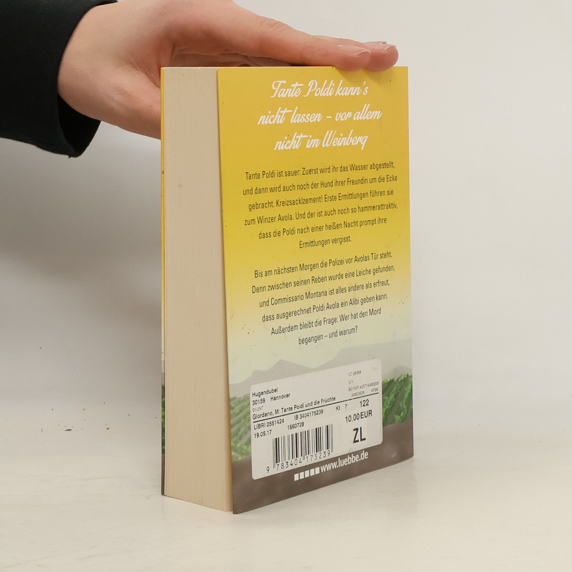 Tante Poldi ist sauer: Zuerst wird ihr das Wasser abgestellt, dann auch noch der Hund ihrer Freundin um die Ecke gebracht. Kreizsacklzement! Erste Ermittlungen führen sie zum Winzer Avola. Und der ist auch noch so hammer-attraktiv, dass die Poldi nach einer heißen Nacht prompt ihre Ermittlungen vergisst. Bis am nächsten Morgen die Polizei vor Avolas Tür steht. Denn zwischen seinen Reben wurde eine Leiche gefunden, und Commissario Montana ist alles andere als erfreut, dass ausgerechnet Poldi Avola ein Alibi geben kann. Außerdem bleibt die Frage: Wer hat Giuliana getötet - und warum?