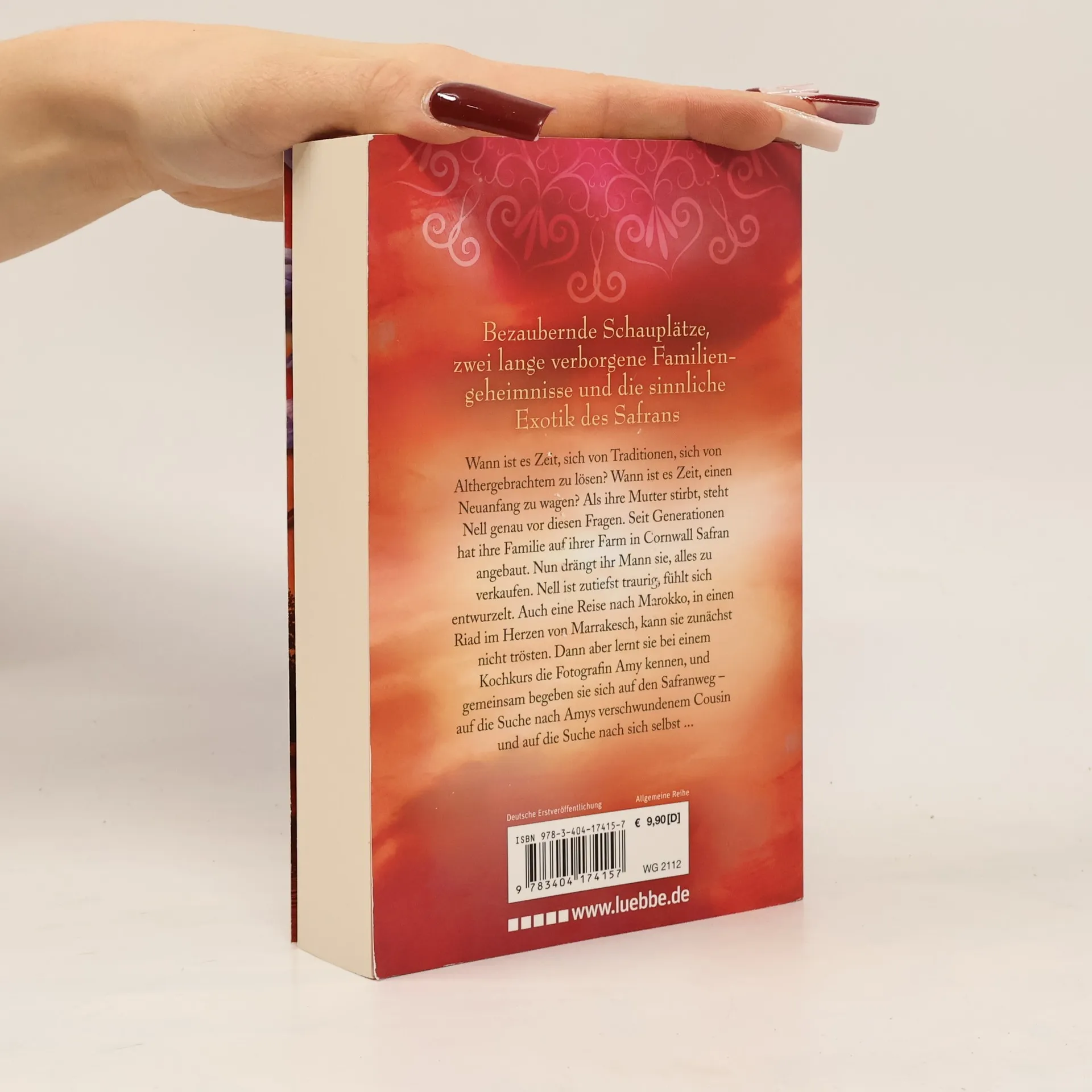 Seit Generationen baut Nells Familie in Cornwall Safran an. Nun, mit dem Tod ihrer Mutter, wird die Tradition enden, denn Nells Mann drängt sie, die Farm zu verkaufen. Nell ist zutiefst traurig, fühlt sich entwurzelt. Auch eine Reise nach Marokko kann sie nicht trösten. Dann aber lernt sie die Fotografin Amy kennen, die im Auftrag ihrer Galerie das Land bereist. Gemeinsam begeben sie sich auf den Safranweg - auf die Suche nach Amys verschwundenem Cousin und auf die Suche nach sich selbst ...