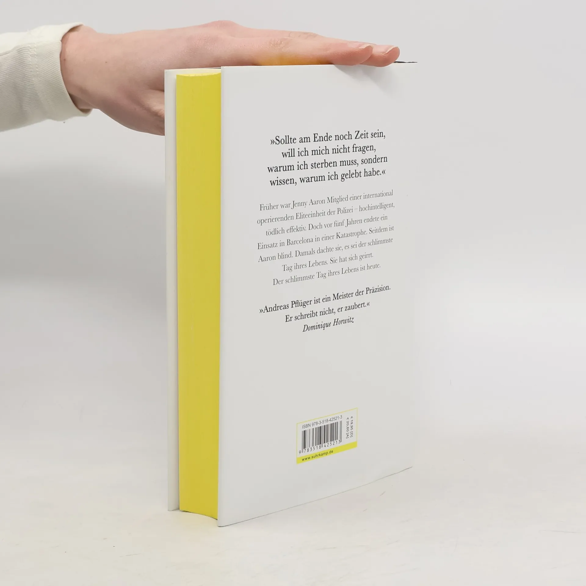 Jenny Aaron war Mitglied einer international operierenden Eliteeinheit der Polizei – hochintelligent, tödlich effektiv. Doch vor fünf Jahren endete ein Einsatz in Barcelona mit einer Katastrophe. Seitdem ist Aaron blind. Damals dachte sie, es sei der schlimmste Tag ihres Lebens. Sie hat sich geirrt. Der schlimmste Tag ihres Lebens ist heute. Seit Jenny Aaron bei einem missglückten Einsatz vor fünf Jahren das Augenlicht verlor, arbeitet sie als Verhörspezialistin beim BKA. Sie versteht es perfekt, zwischen den Worten zu tasten und das dahinter Verborgene zu erspüren. Als ihre früheren Berliner Kollegen sie bei einem Mordfall um Mithilfe bitten, wird Aaron jäh in ihre Vergangenheit gerissen: Reinhold Boenisch, für dessen Verurteilung sie als junge Polizistin sorgte, soll im Gefängnis eine Psychologin getötet haben. Aaron nimmt den Fall an und muss schon bald erkennen, dass Boenisch nur der Anfang ist – eine Schachfigur in einem Komplott. Nach und nach wird ihr offenbar, dass ihr bisheriges Leben eine einzige Vorbereitung auf die folgenden beiden Tage war. Um dieses Leben wird Aaron kämpfen müssen wie nie zuvor.