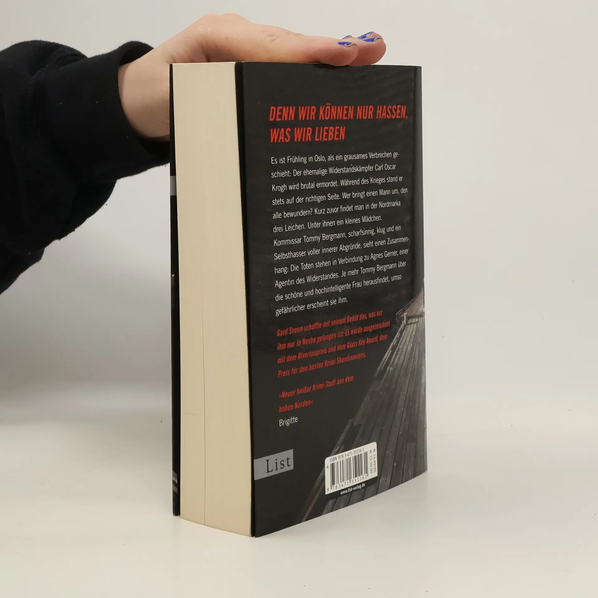 Ausgezeichnet als bester Krimi Skandinaviens Es ist Frühling in Oslo, als ein grausames Verbrechen geschieht: Der ehemalige Widerstandskämpfer Carl Oscar Krogh wird brutal ermordet. Während des Krieges stand er stets auf der richtigen Seite. Wer bringt einen Mann um, den alle bewundern? Kurz zuvor findet man in der Nordmarka drei Leichen. Unter ihnen ein kleines Mädchen. Kommissar Tommy Bergmann, scharfsinnig, klug und ein Selbsthasser voller innerer Abgründe, sieht einen Zusammenhang: Die Toten stehen in Verbindung zu Agnes Gerner, einer Agentin des Widerstandes. Je mehr Tommy Bergmann über die schöne und hochintelligente Frau herausfindet, umso gefährlicher erscheint sie ihm. „Gard Sveen beherrscht die Kunst des Krimischreibens. Beeindruckendes Debüt eines Autors, der gekommen ist, um zu bleiben. Lesen Sie dieses Buch!“ Anne Holt
